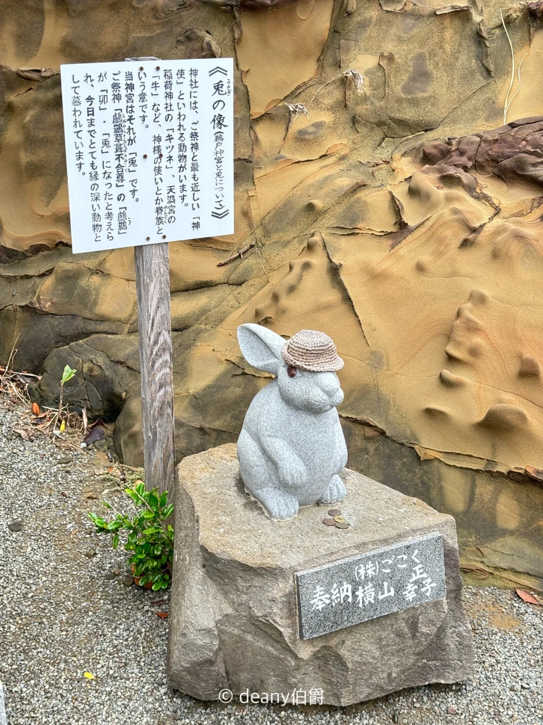 附近就是鹈户神宫。因祭神“鸬鹚草葺不合尊”名字的首字う和兔兔(うさぎ)首字相同,能看到不少兔兔的石像。