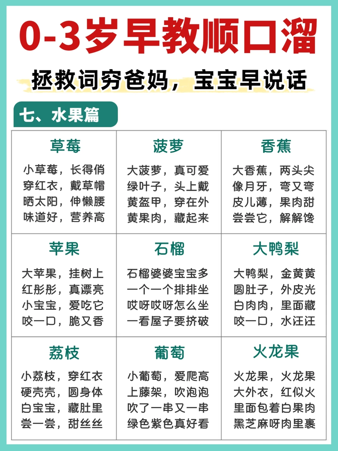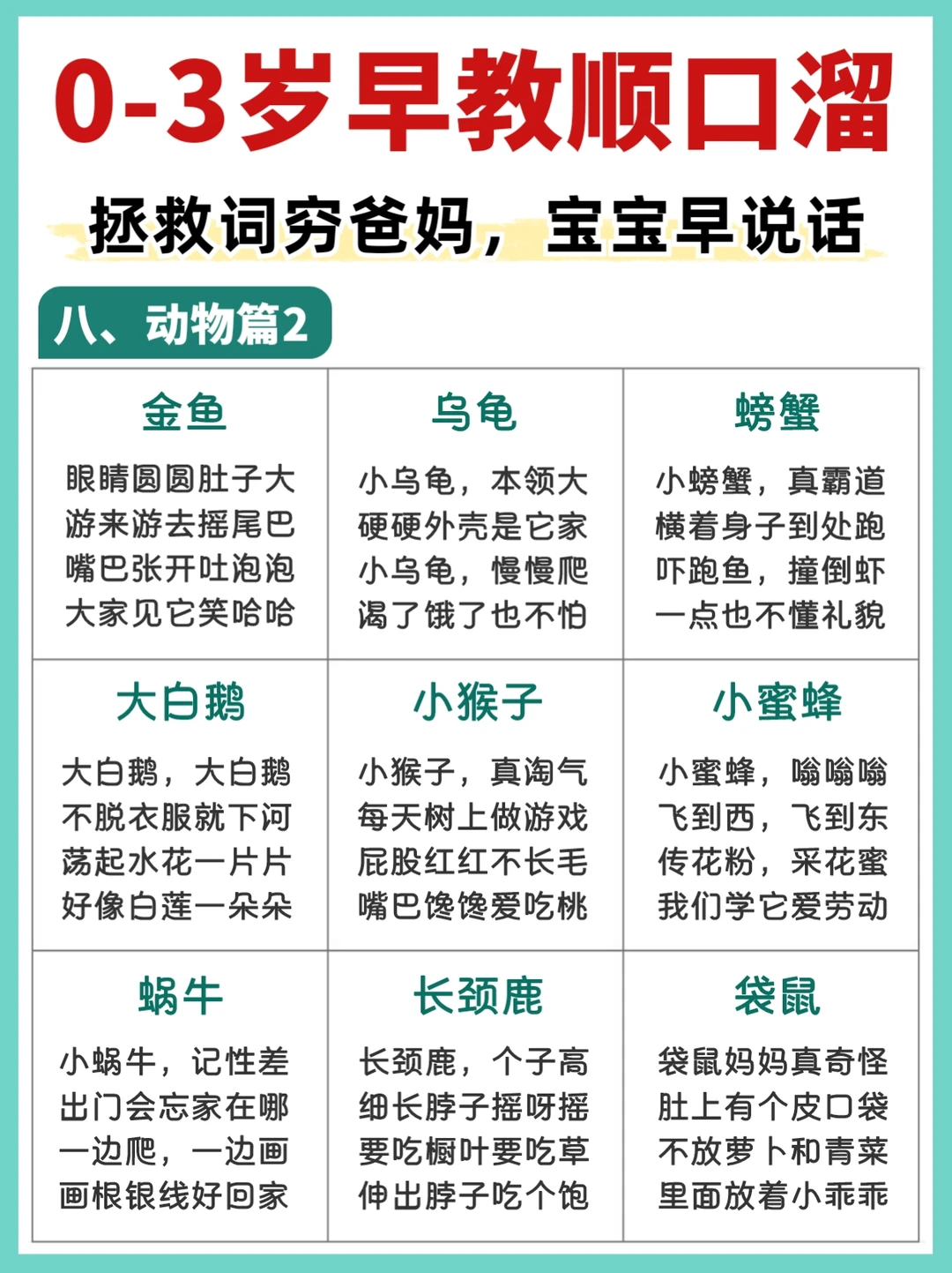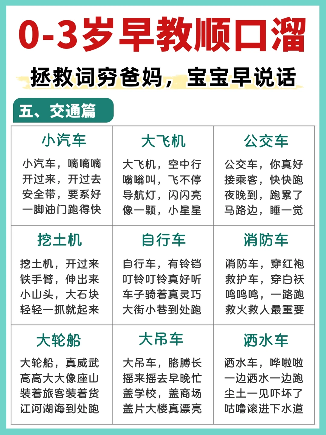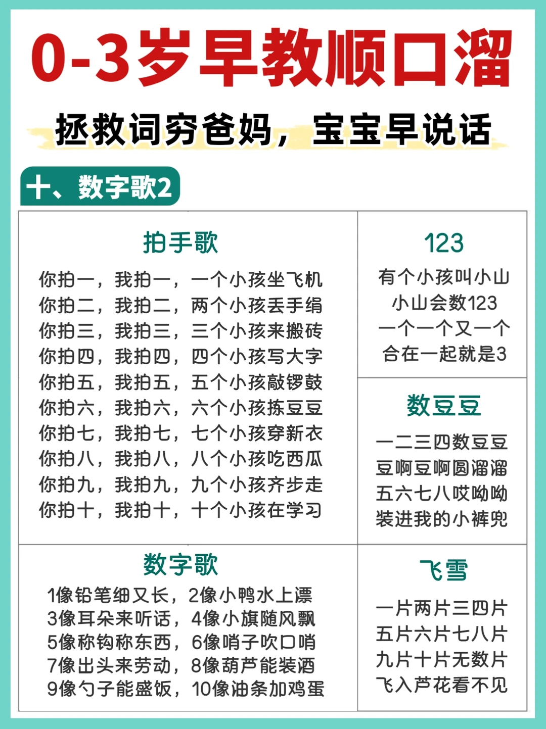 宝宝0-3岁的早教顺口溜给大家整理出来了! 给孩子上早教中心的时候, 明确说了这是宝宝语言启蒙好方法! 爷爷奶奶在家带娃的也可以打印出来! 每天念一念,听一听!宝宝早开口!
