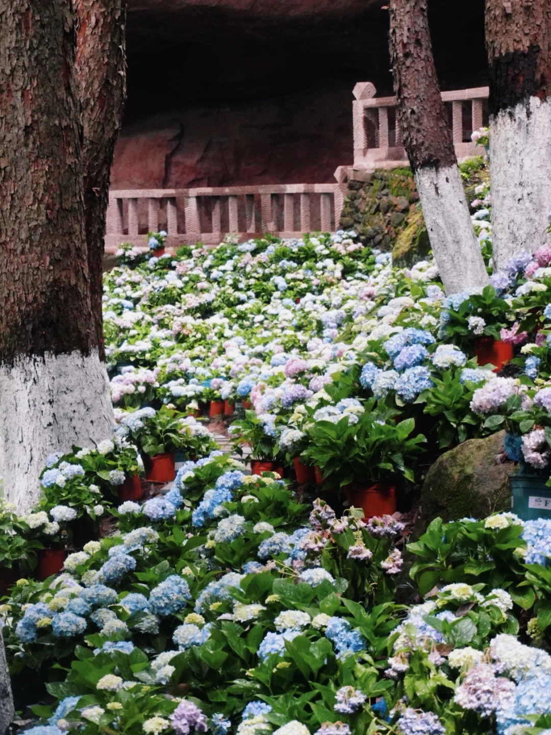 📜通天岩=唐宋摩崖造像盲盒! 278尊佛像从丹霞赤壁里「长」出来 北宋的观音低眉笑,明代的王阳明把心学刻上崖 连衣纹褶皱都留着工匠的指纹温度 . 千年石窟层叠如画,山风穿林过耳 仿佛与古人隔空对话 . 🕰️近日限定玩法 ❶ 🌸走入绣球花海,蓝紫粉白簇拥成瀑,每一步都踏进莫奈的调色盘 ❷最妙是亲手制作中草药包,艾草薄荷金银花在指尖流转,舂进初夏的草木灵气🧺 治愈感拉满💚 . tips:可参考游客中心的推荐路线进行游玩,放在最后一张图了