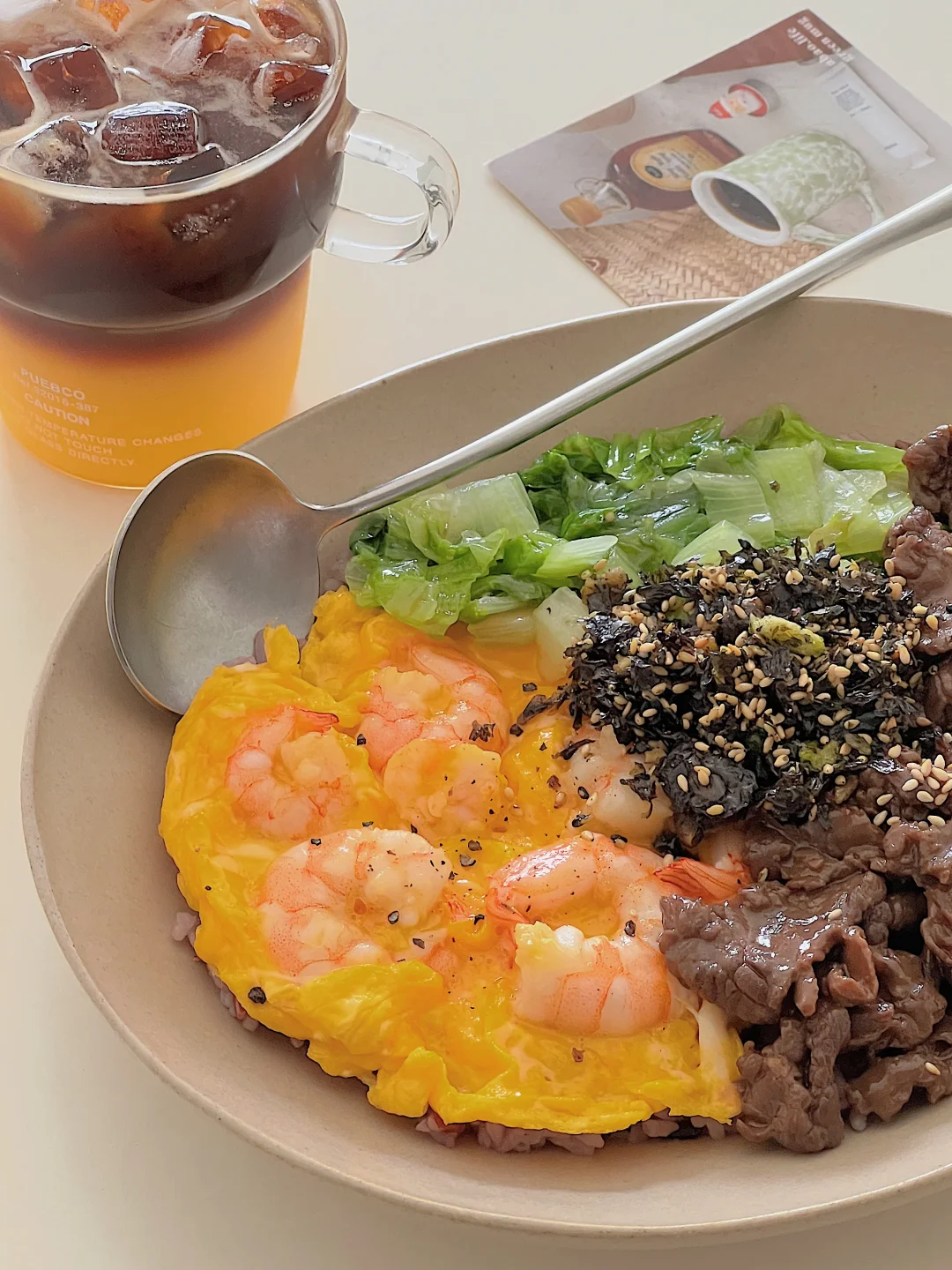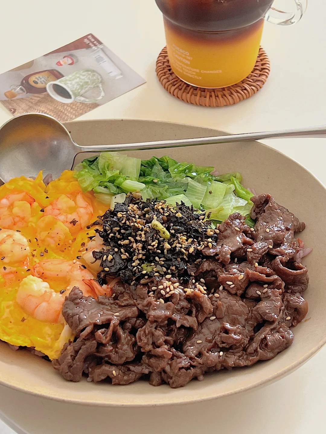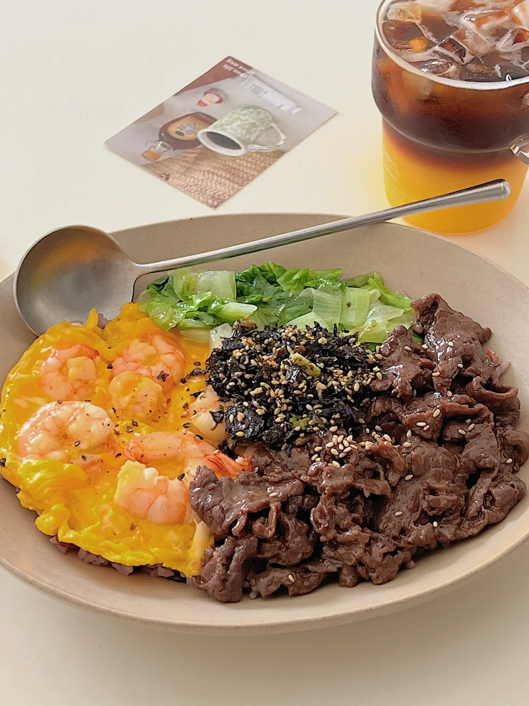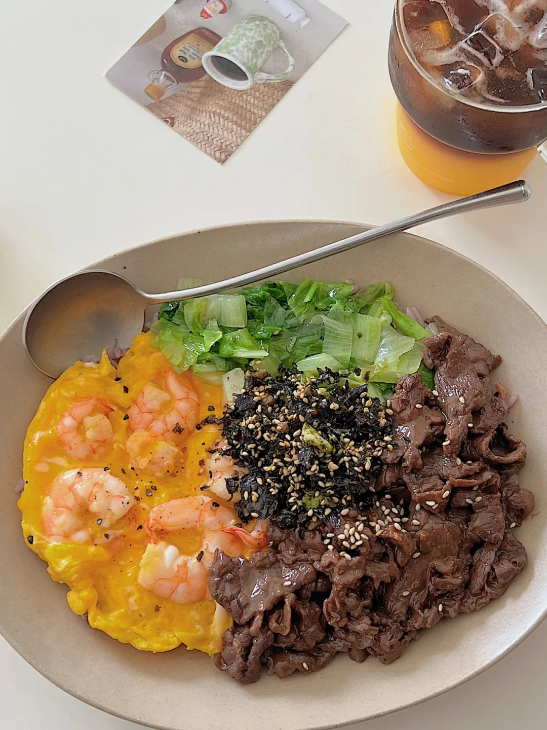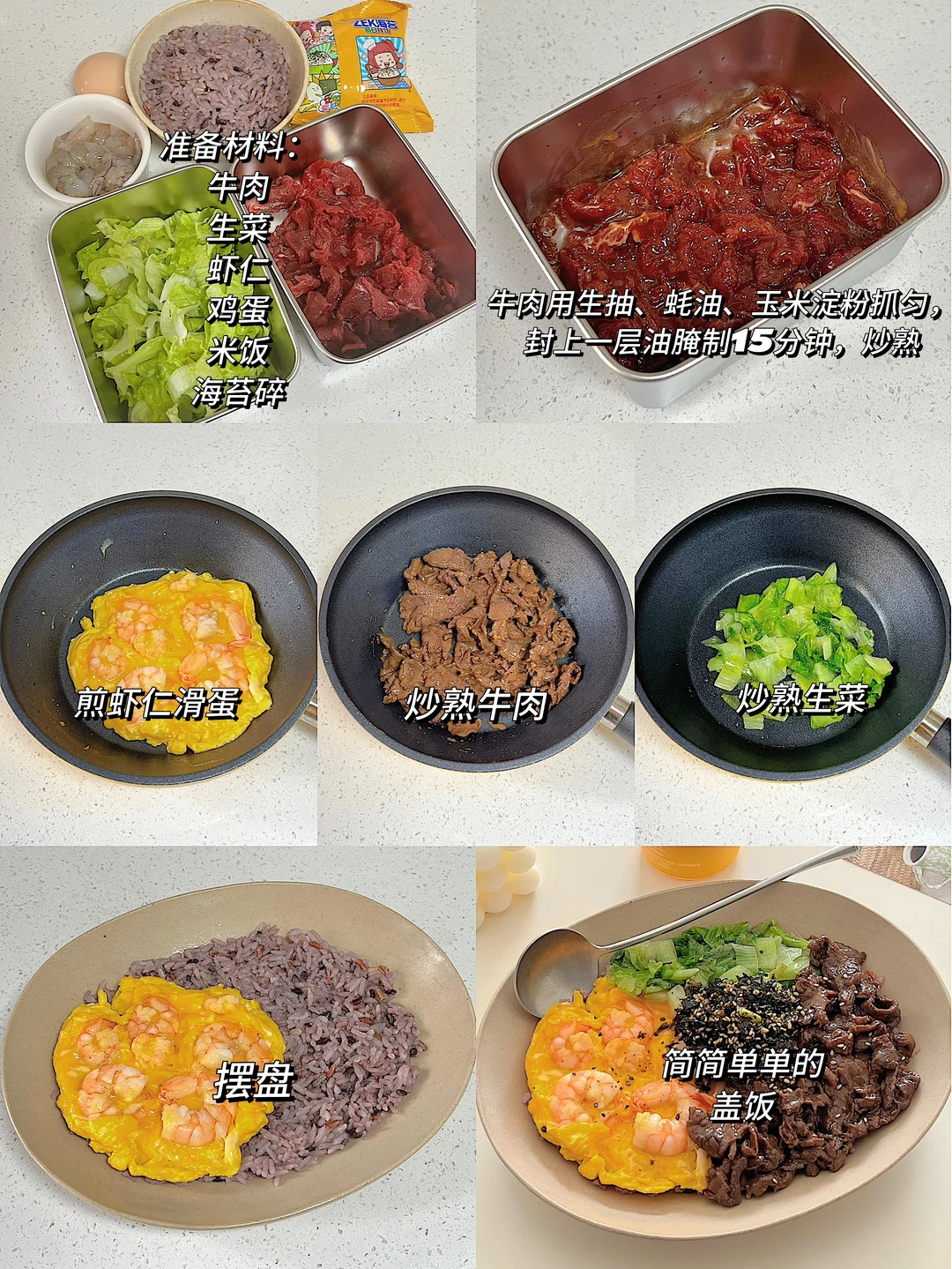 干净饮食|虾仁滑蛋牛肉盖饭🍱低卡高蛋白
