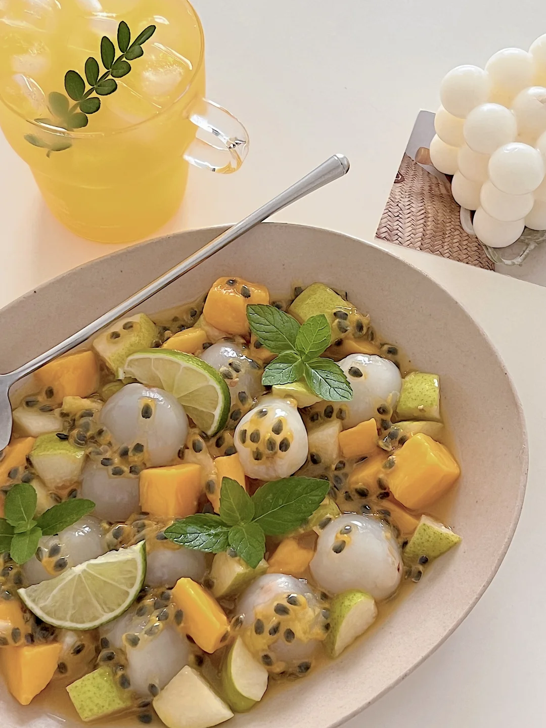 我家的夏日凉方|百香果渍荔枝芒果|酸爽开胃