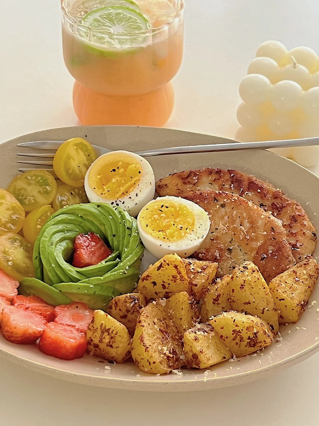 干净饮食✨鸡胸肉烤土豆牛油果拼盘🍽️