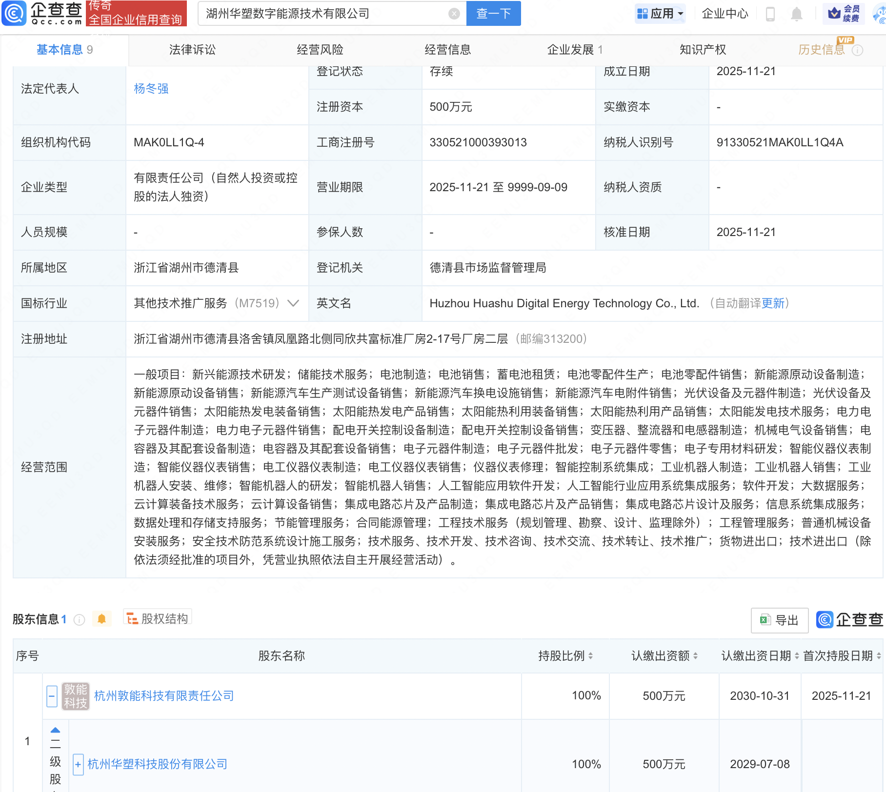 企查查APP显示,近日,湖州华塑数字能源技术有限公司成立,经营范围包含:智能机器人的研发;智能机器人销售;人工智能应用软件开发;人工智能行业应用系统集成服务;集成电路芯片及产品制造等。企查查股权穿透显示,该公司由华塑科技(301157)间接全资持股。