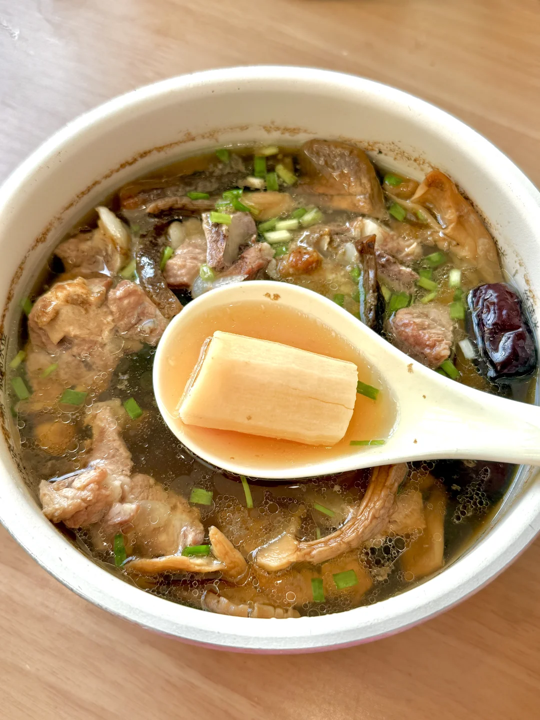 4️⃣ 加入切段山药,续炖20分钟至山药软糯