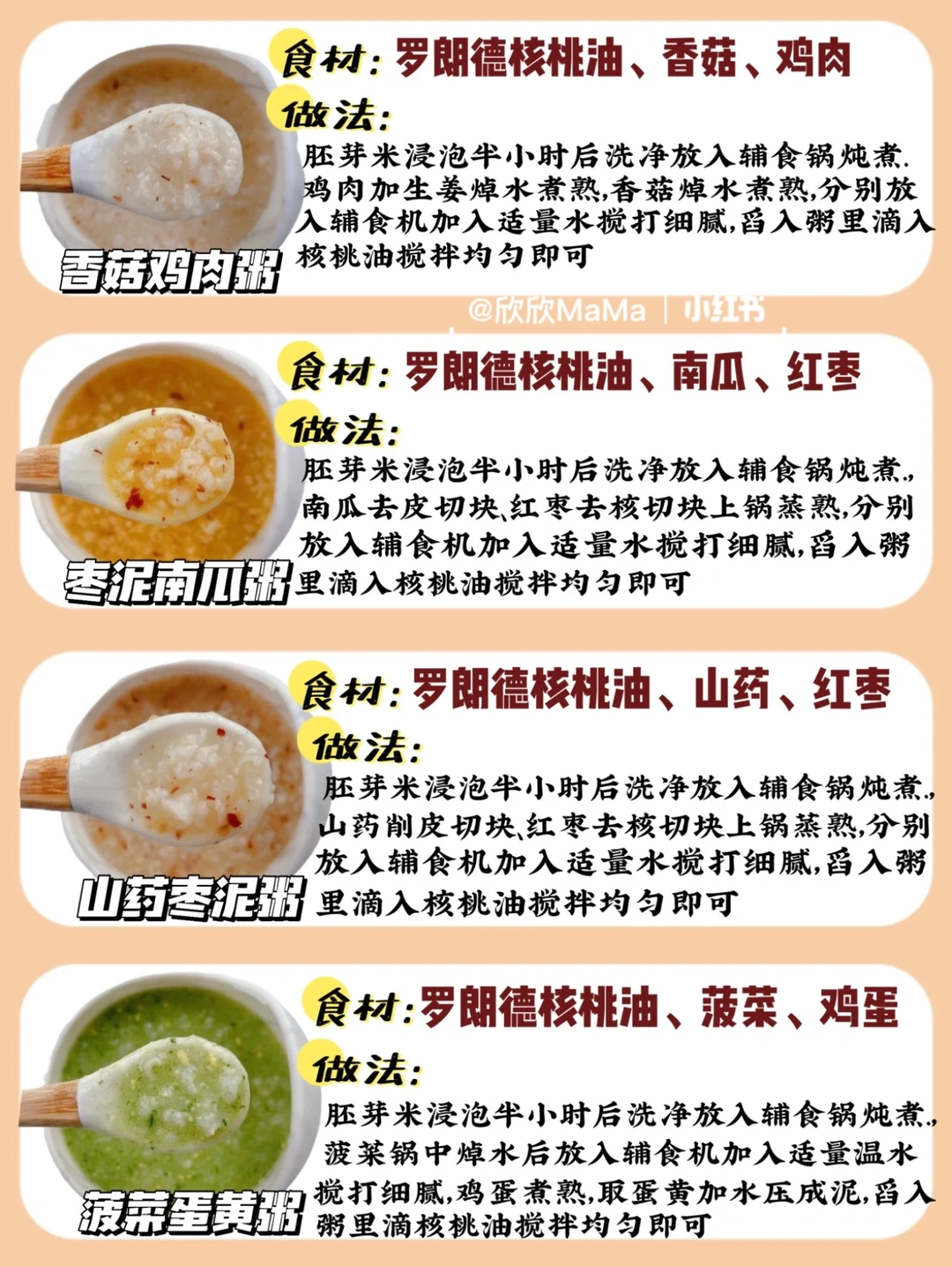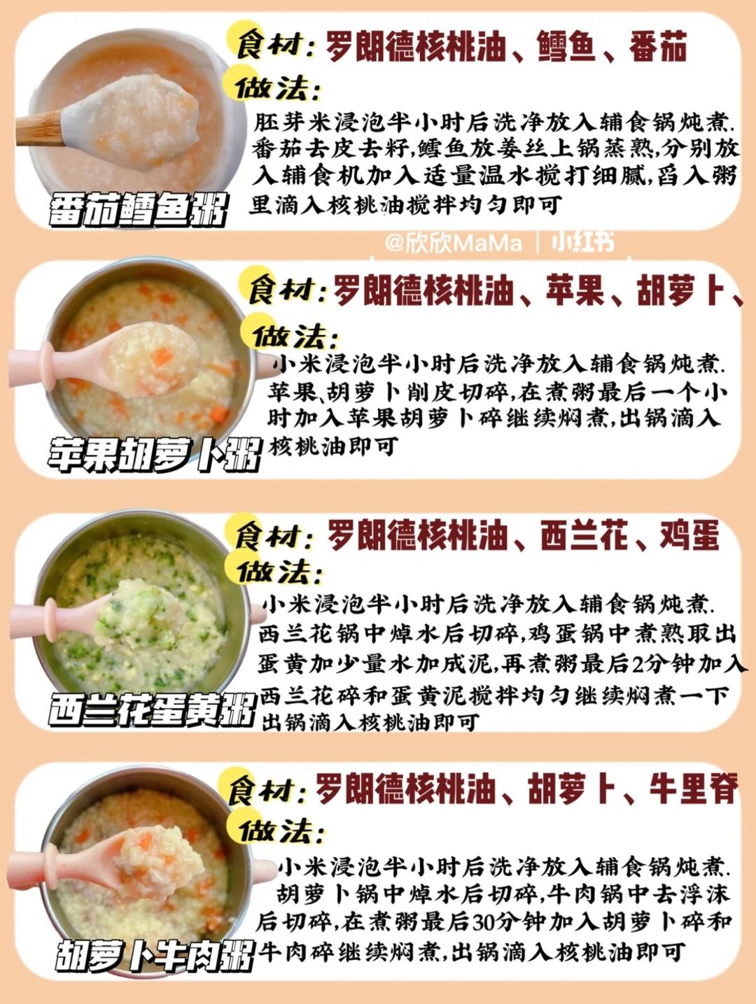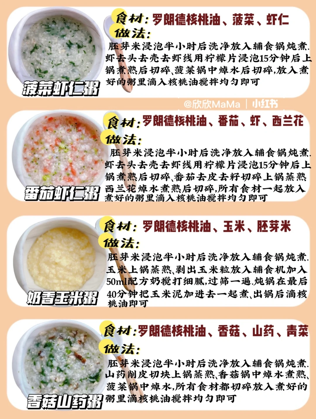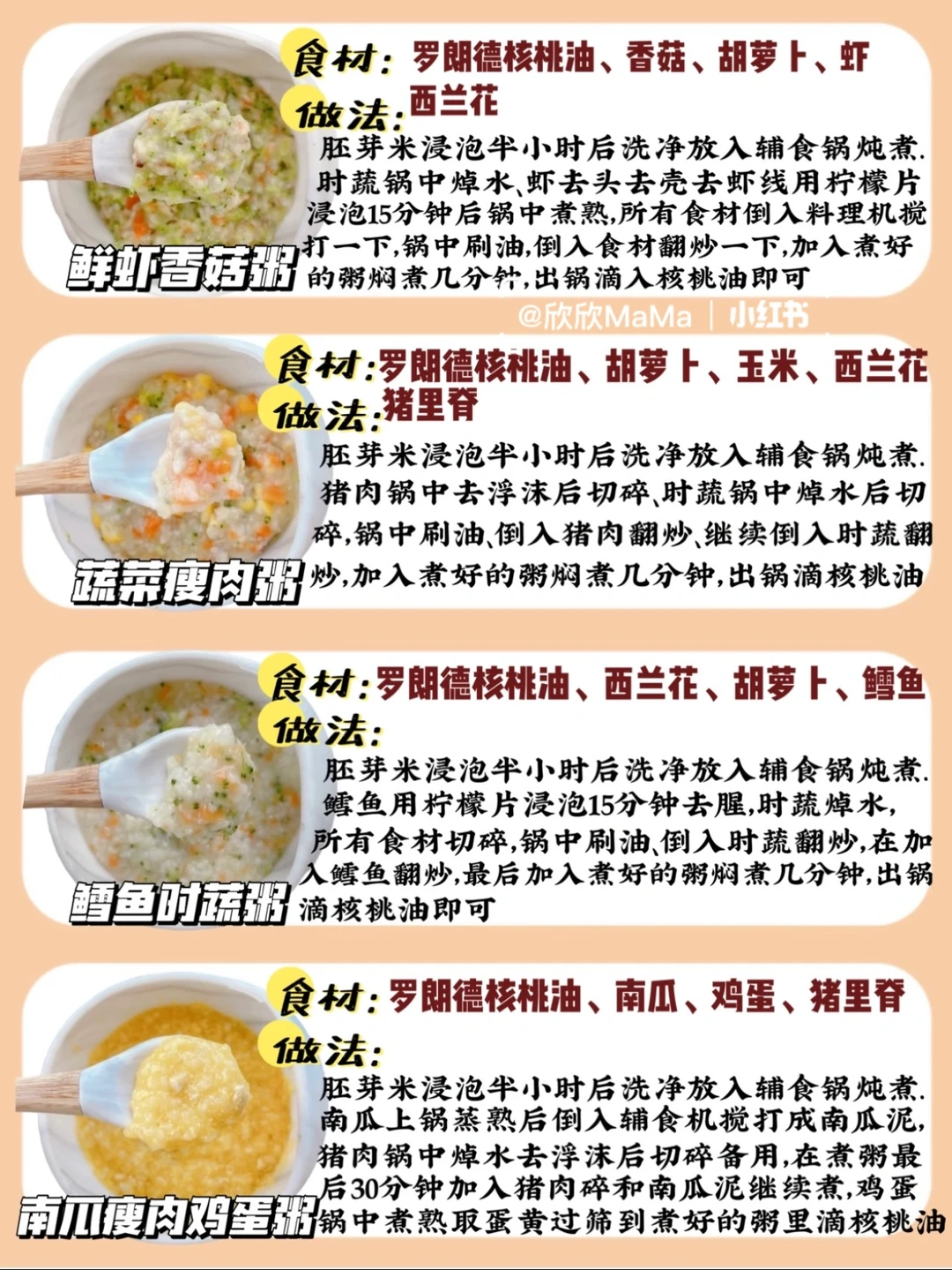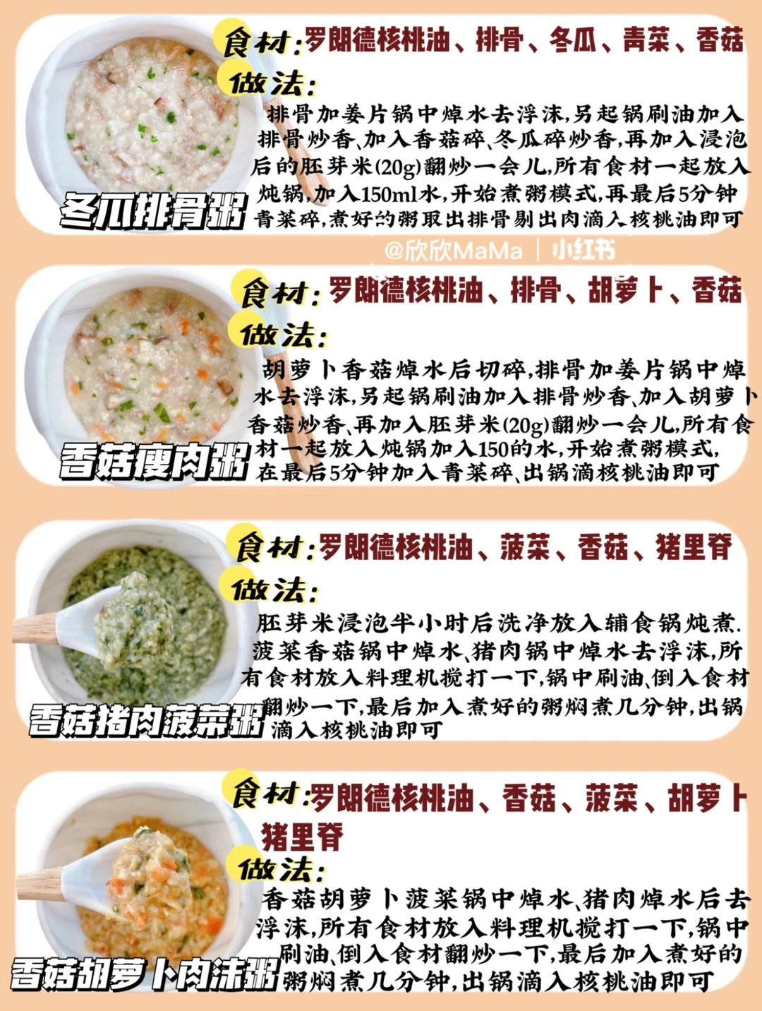 都是我觉得比较好吃的绝配的搭配,7个月刚加辅食粥先从比较简单的食材搭配开始哦!慢慢再食材多元化起来!
