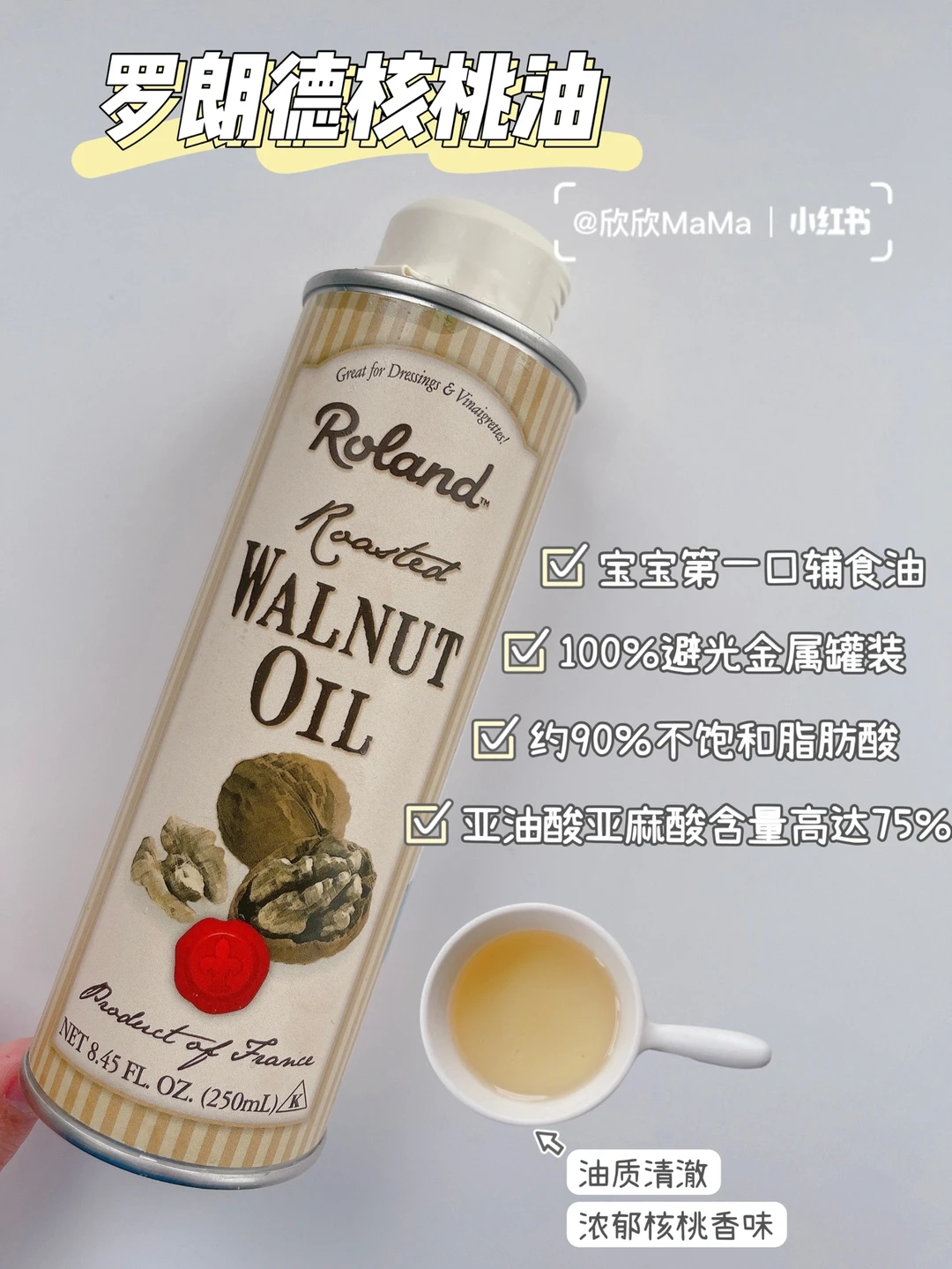 🔻我用的辅食油是罗朗德的核桃油,这款核桃油是我一直在用的,它的不饱和脂肪酸高达90%,口感清淡,宝宝更容易接受~而且它是金属包装,能很好的储存,保证营养的不流失~平时我都会在宝宝粥里、面条里、烩饭、蒸蛋加入几滴核桃油~宝宝会更爱吃哦!