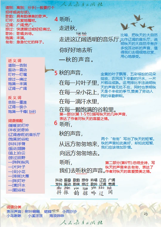 三上语文第7课《听听,秋的声音》详细笔记