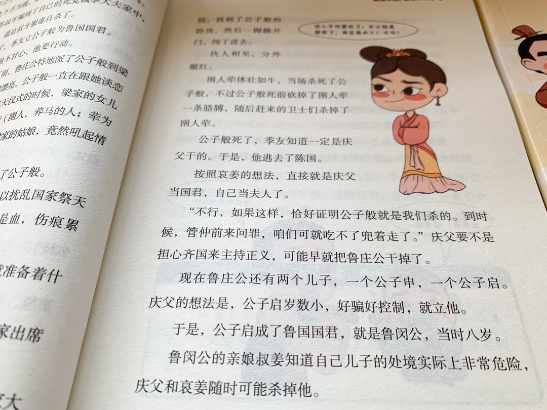 整套童书的话,我花6天时间读完,读下来非常顺畅,没有艰涩的文言段落和繁杂的知识体系,每个故事里既包含了史实,对应的成语,作者又不失时机的点拨几句,非常具有教育意义。同时用青少年的语言体系去写一篇篇春秋故事,很有吸引力。我甚至为此想要阅读更多的春秋历史去完善这本书不够的地方,而看完了这套书,连身边的三年级的小朋友都主动向我借这套书,我们甚至交流起了春秋历史,太不可思议啦。