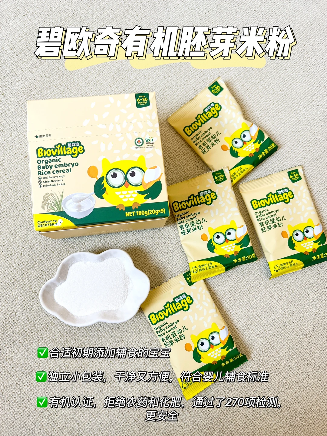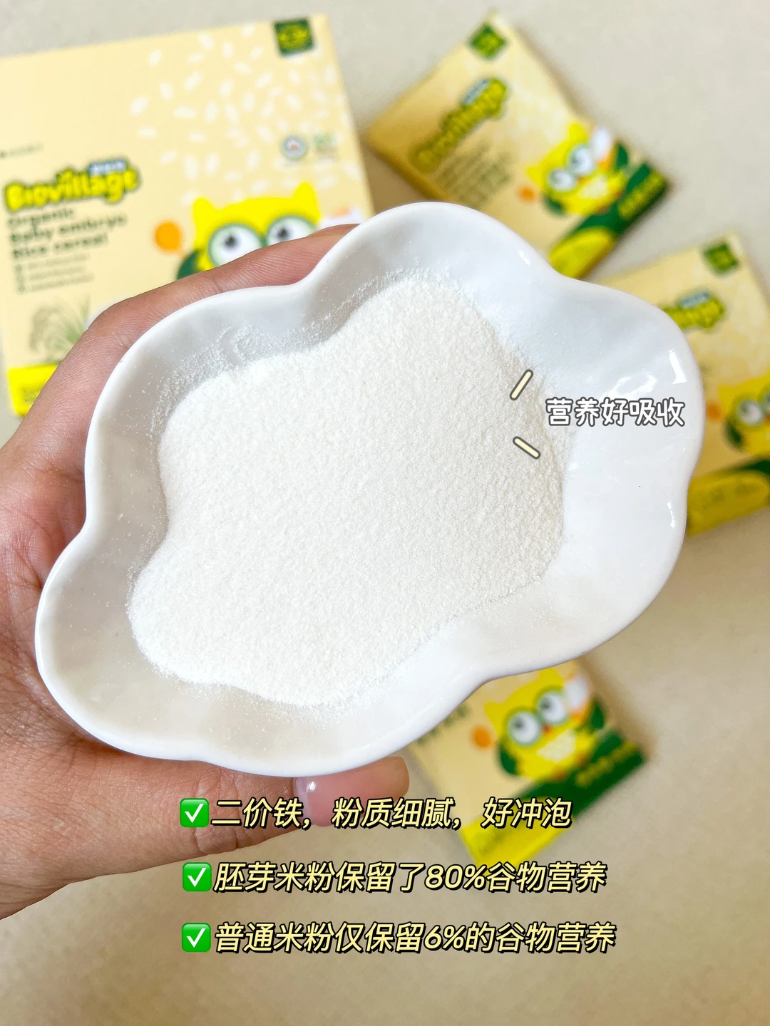 🌈 我用的是碧欧奇有机胚芽米粉,二价铁含量高,宝宝更易吸收。原料为胚芽米,胚芽米保留90%全谷物营养,普通大米仅保留了6%左右的全谷物营养。这款米粉配料表简单干净,留胚率大约等于90%,营养价值更高,冲泡后有浓浓的米香味,独立小袋包装,干净卫生也方便携带出门。