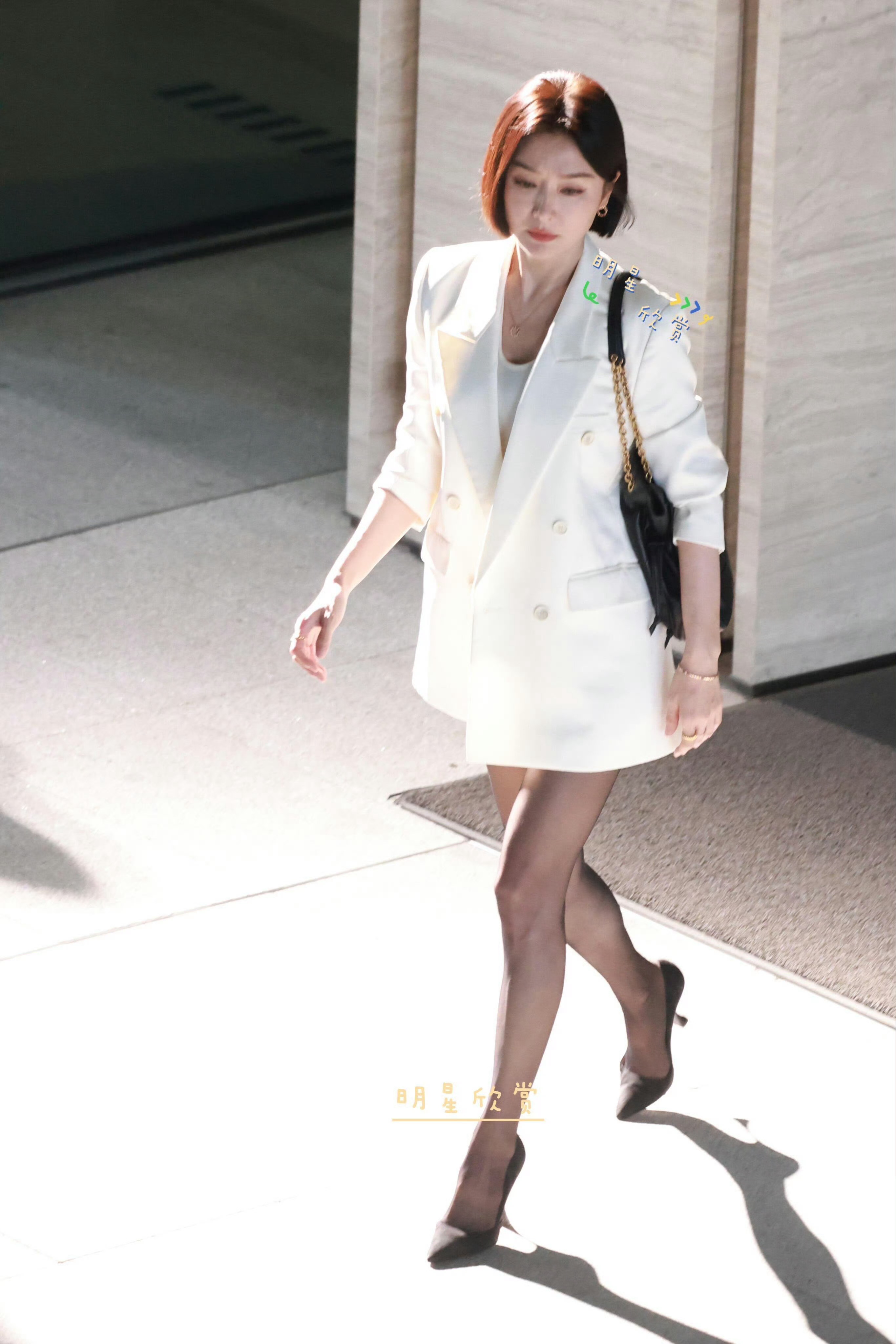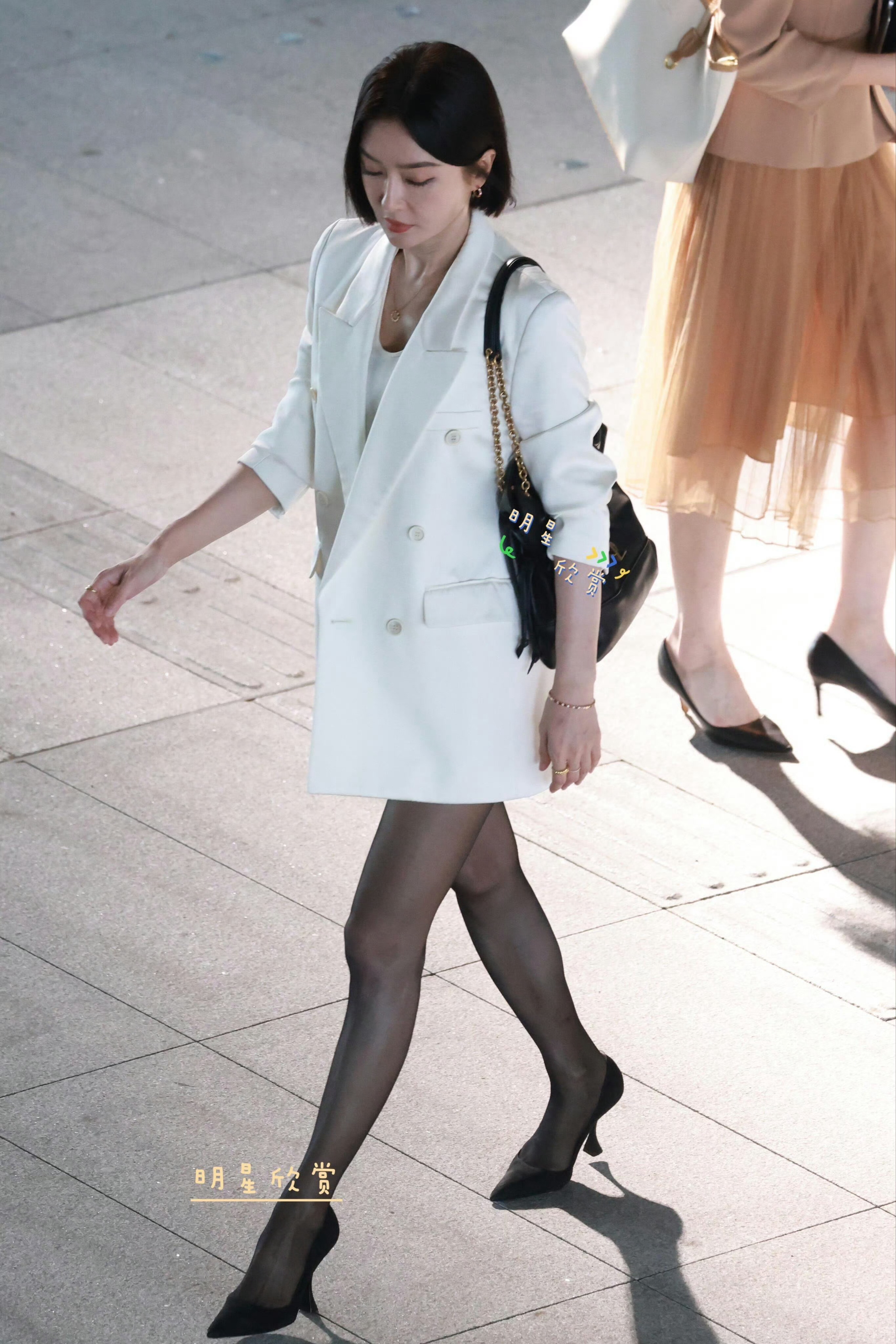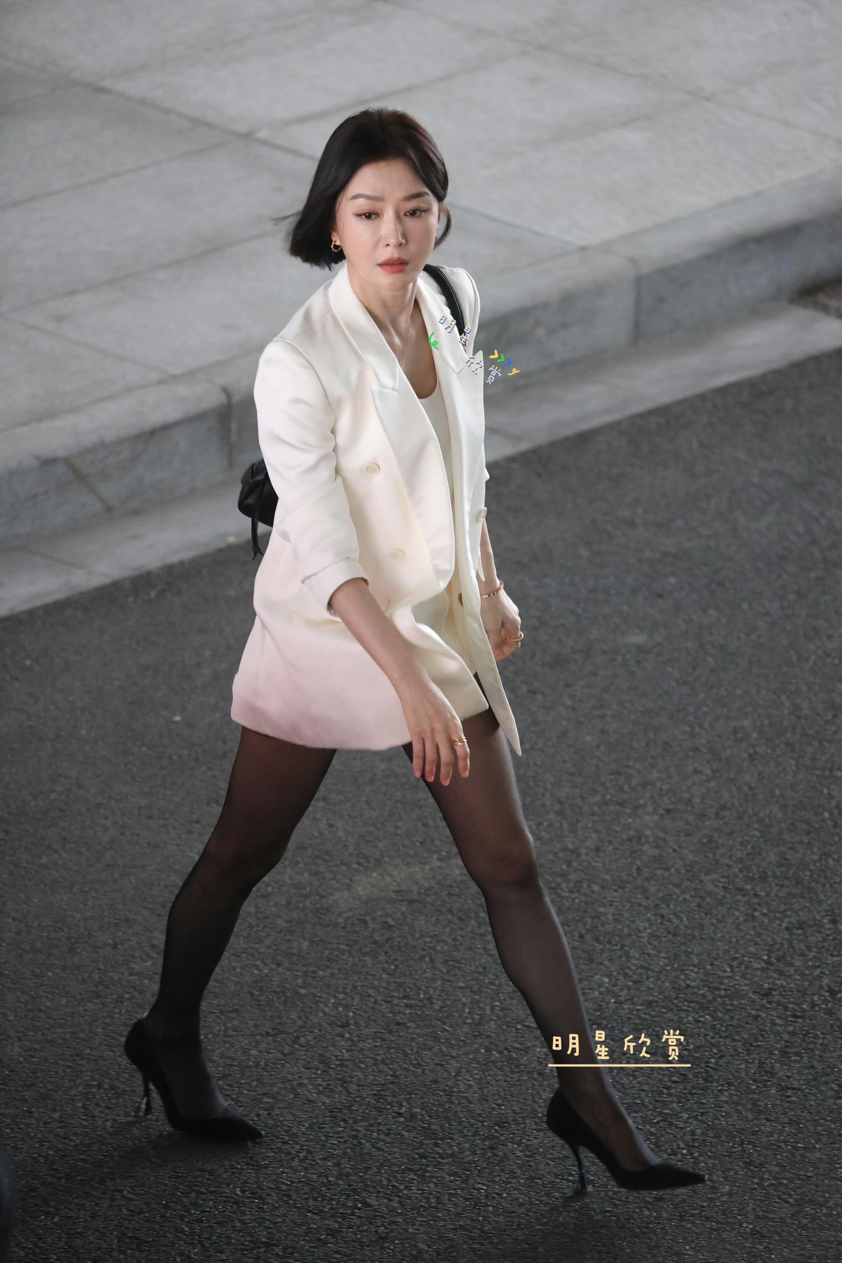 秦岚 x 新剧《闪耀如她2》拍摄进行时~“沈真”这套白色西装+黑丝高跟鞋真的太耀