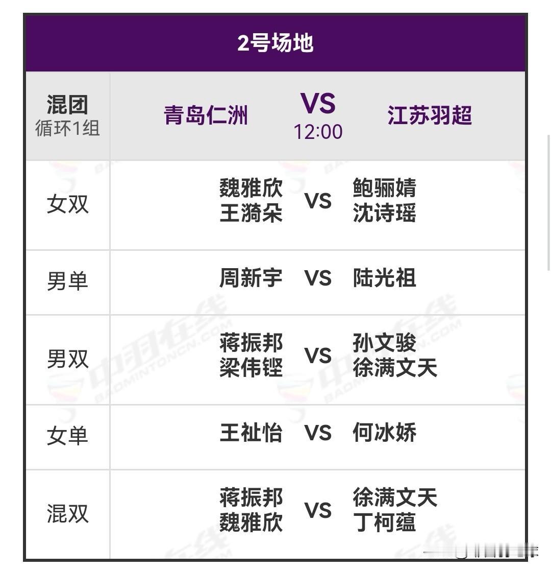 11月28日中国羽毛球俱乐部超级联赛赛程安排 今日混团循环赛上午场于北京时间12:00开启。一号场地将迎来厦门银行与浙江竞体的对决,二号场地则是青岛仁洲对阵江苏羽超。今日,凤凰组合、酱板鸭组合、雷兰曦、李怡婧/罗徐敏、韩悦、韩千禧、王祉怡、何冰娇等国羽新老队员将亮相赛场。上午场详细对阵名单如下,晚场名单尚未公布,发布后将及时更新,敬请关注。 羽毛球赛事 羽毛球 羽毛球爱好者 羽毛球比赛 羽毛球赛程 国羽 国羽加油 凤凰组合 中国羽毛球俱乐部超级联赛