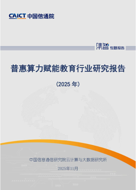 为剖析“算力+教育”行业应用发展趋势,优化算力资源在教育行业的应用效果,助力算力产业高效赋能和教育行业的数字化转型,中国信息通信研究院(简称“中国信通院”)云计算与大数据研究所编制《普惠算力赋能教育行业研究报告(2025年)》,并于2025年11月12日在2025华彩论坛上发布。