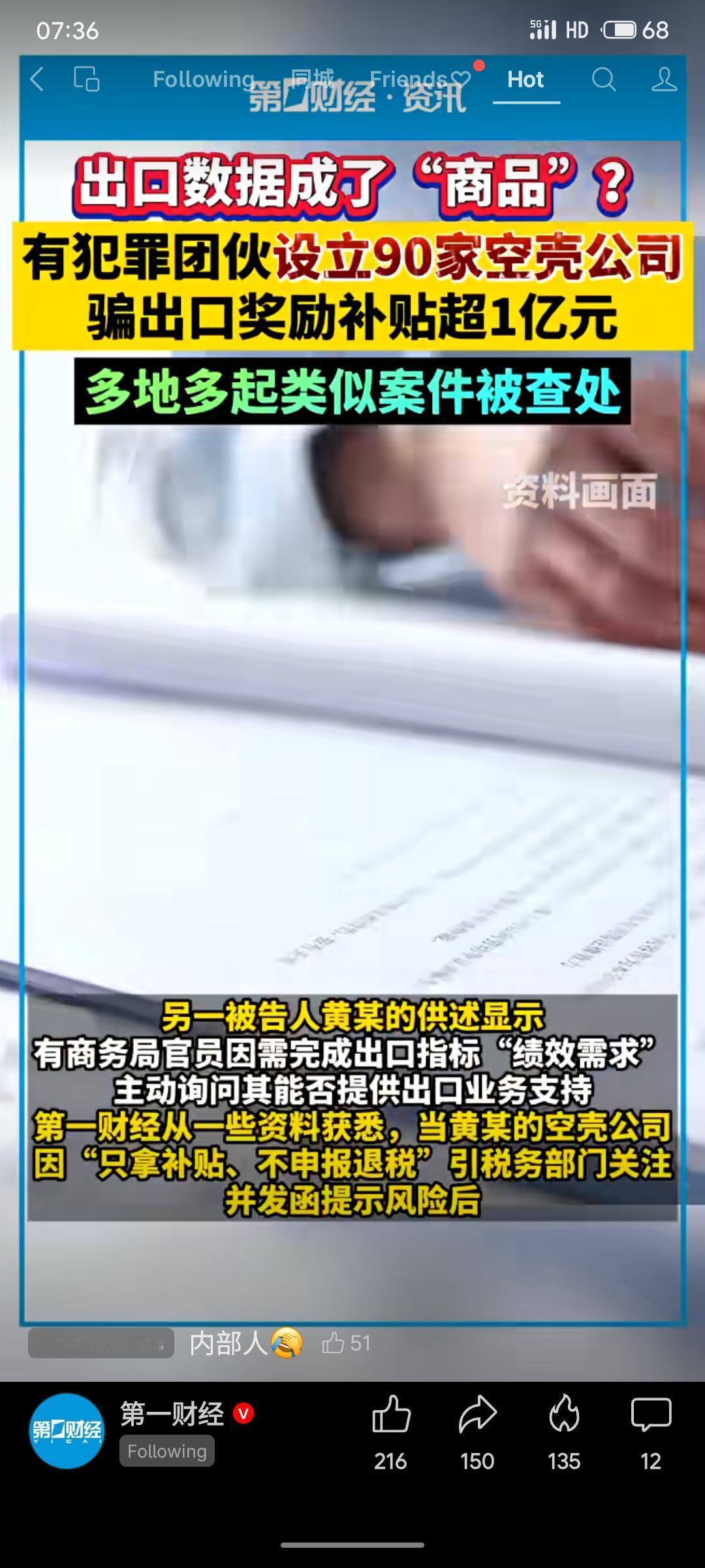 有犯罪团伙在湖北等地注册90余家空壳公司,通过购买真实出口数据并伪造成本地业绩,骗取地方出口奖励补贴超1亿元。案件还揭示,部分地方商务部门为完成考核指标,对此类行为曾予以默许甚至鼓励,同类骗补案件在全国多地亦有发生。