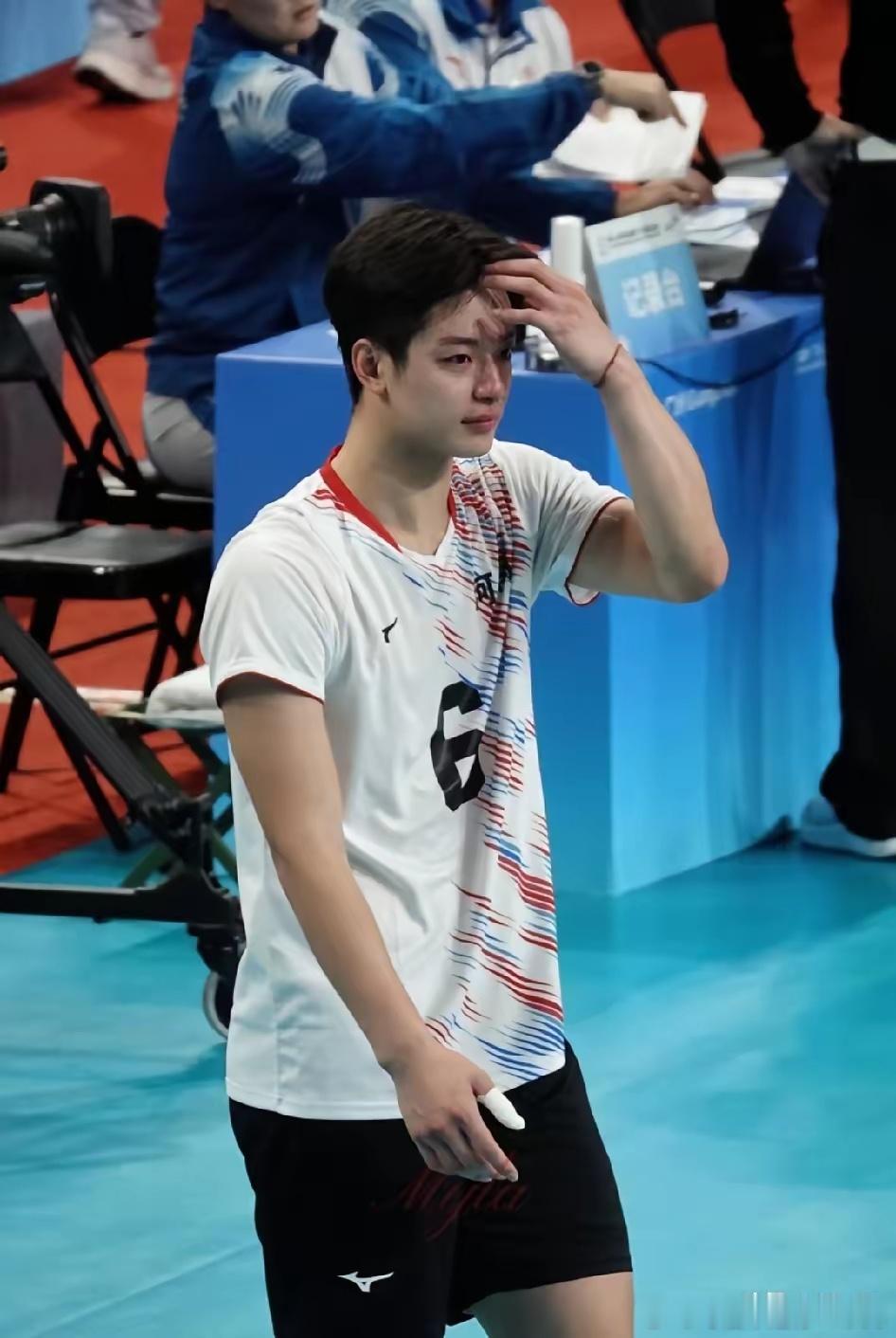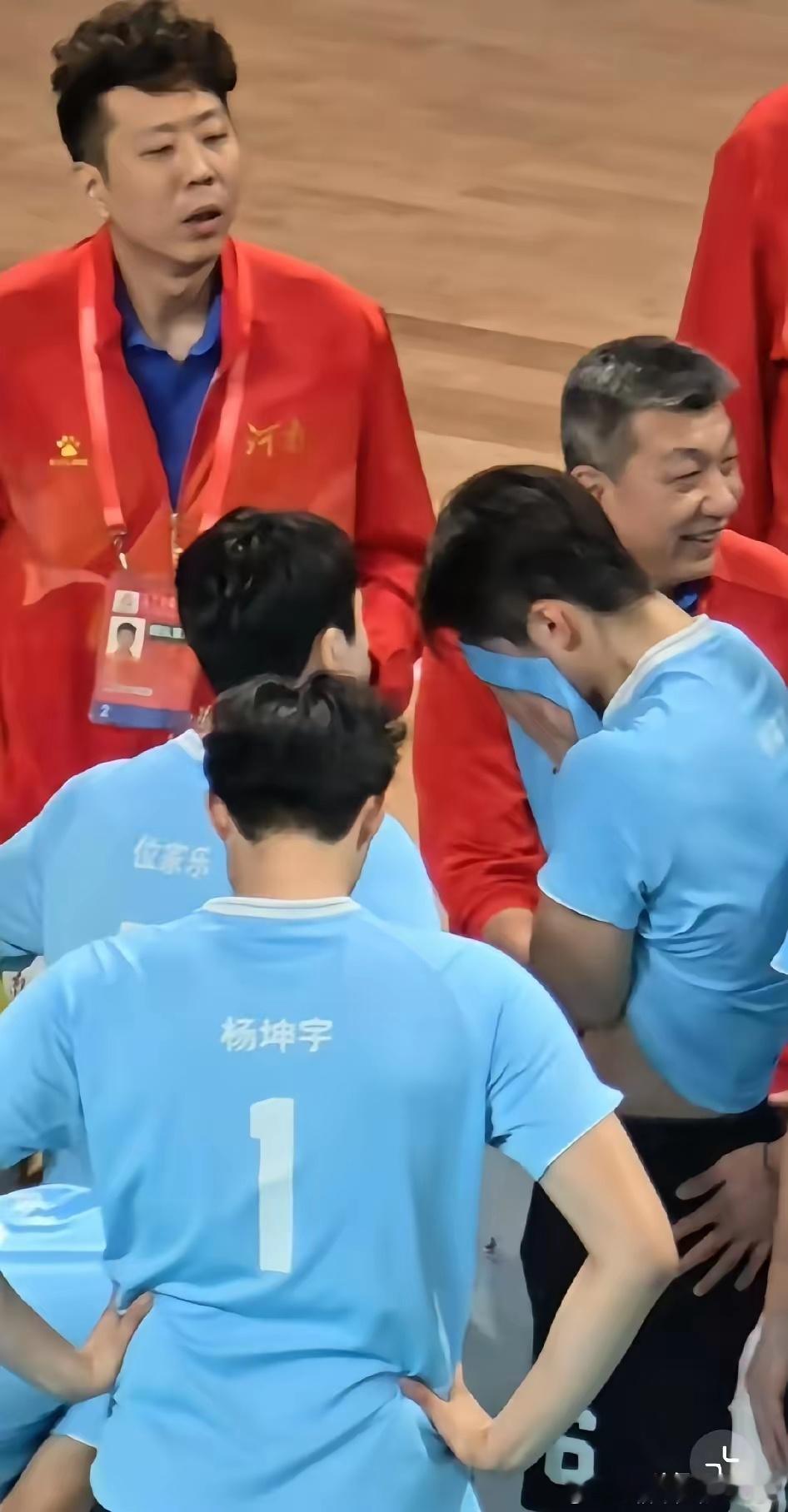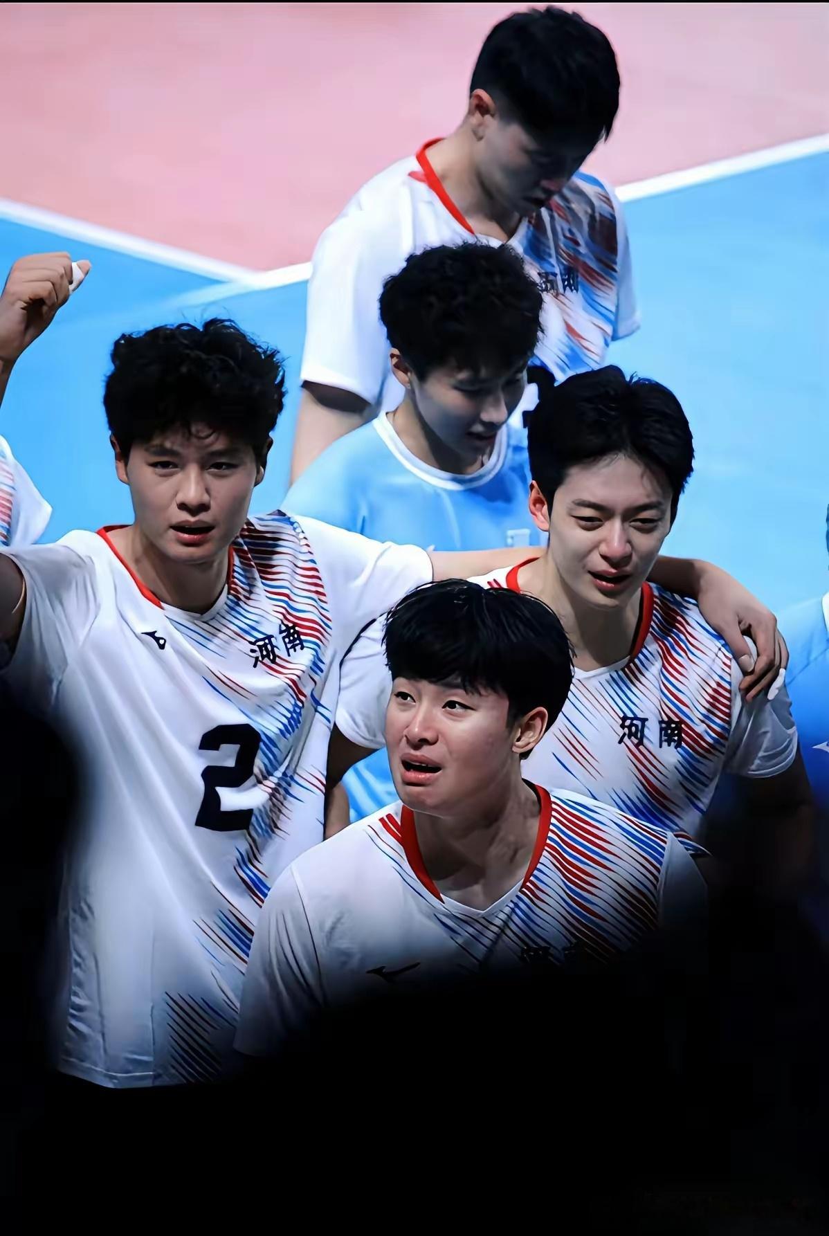 说实话,我就是因为图一的颜值点进去的,才知道了男排运动员杨家兴。突然理解老爷们看到软萌妹子流泪会心软的感觉了。因为哭得梨花带雨,我见犹怜,05年河南小将杨家兴火出圈。可能年纪小,泪点低,比赛打到一种状态,氛围上来,忍不住会哭。可以看出来,队员都很友善,纷纷来安慰他。评论区的安慰也不少