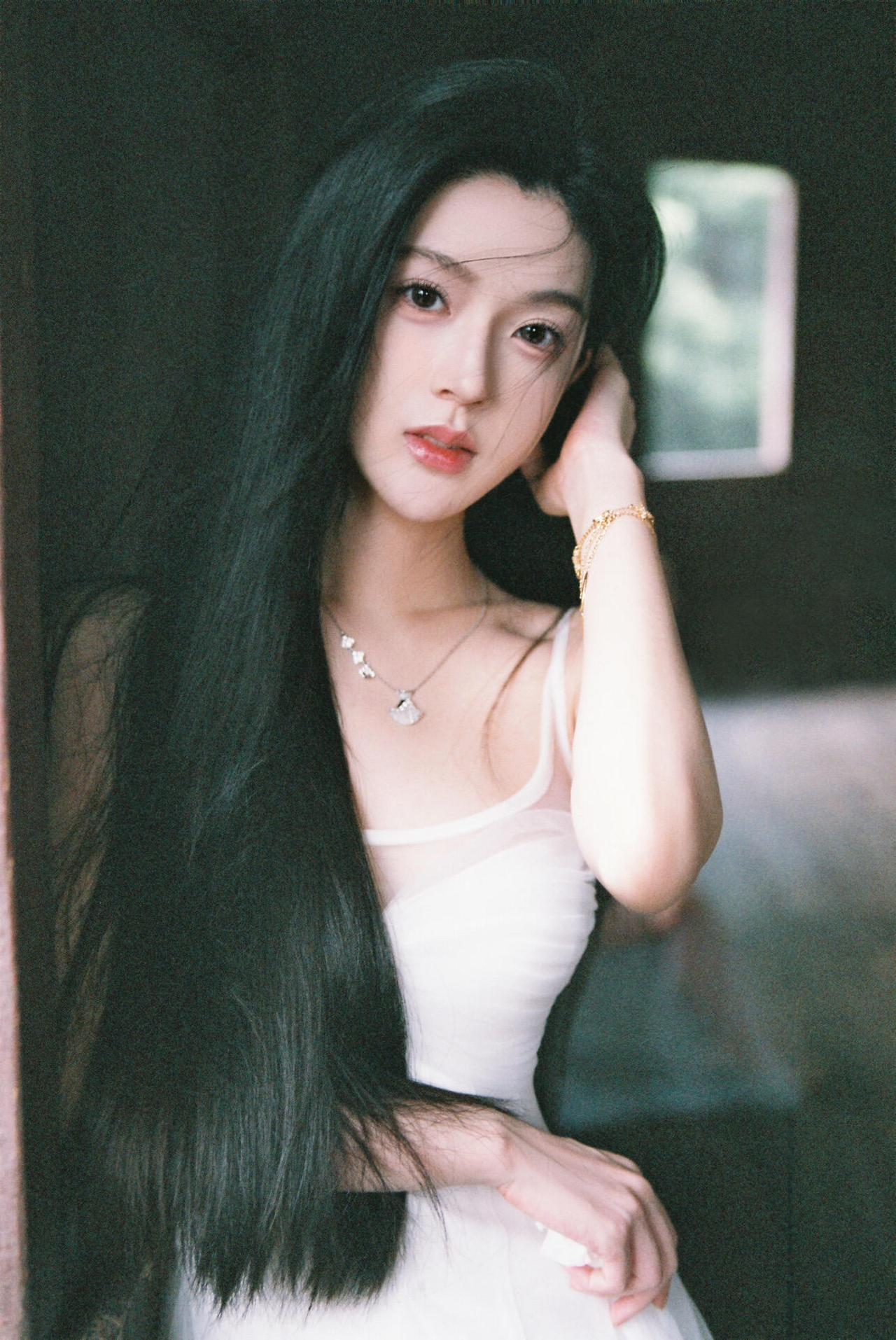 优雅黑发少女,复古风穿搭,复古相机滤镜,时尚复古风