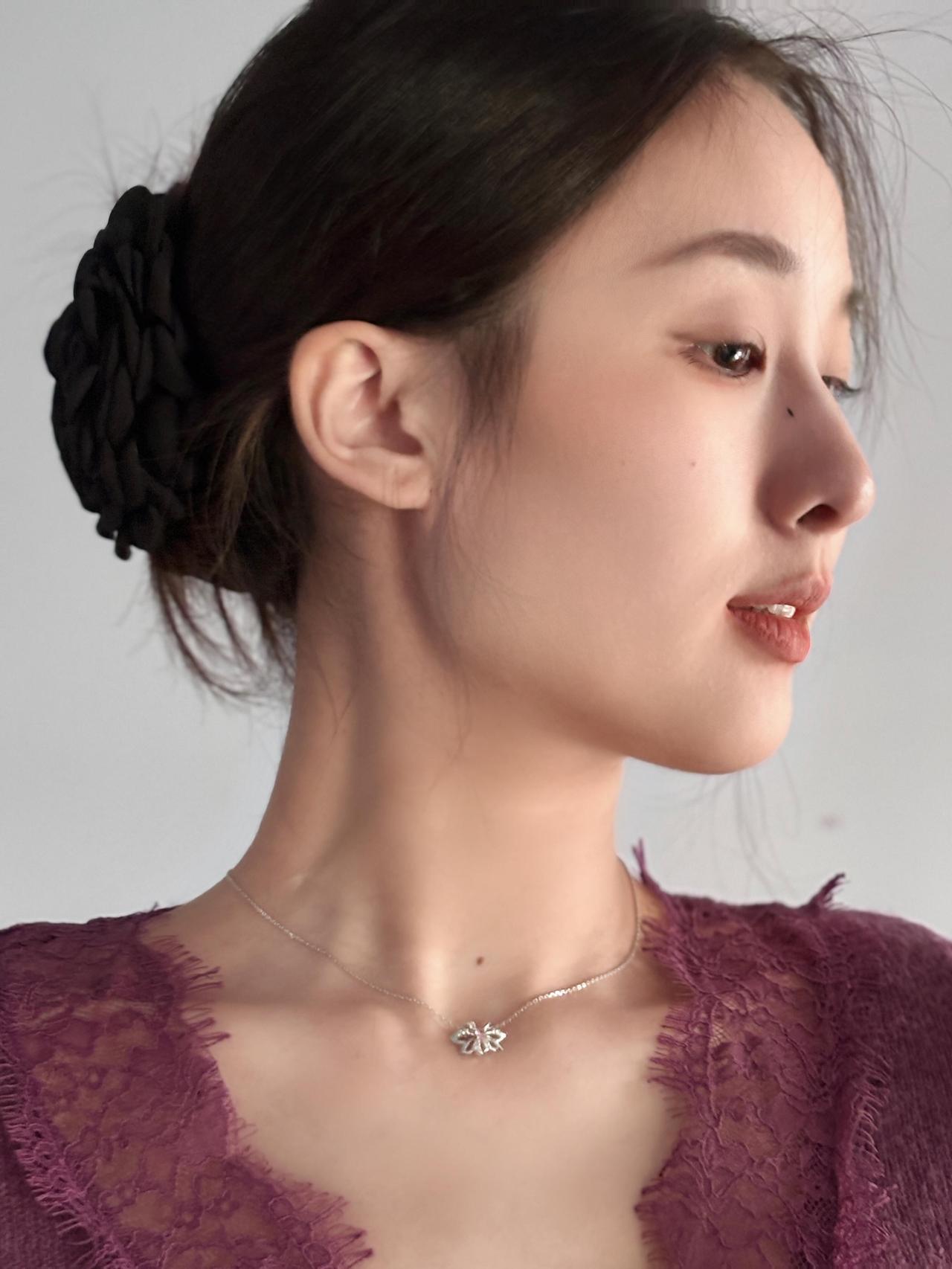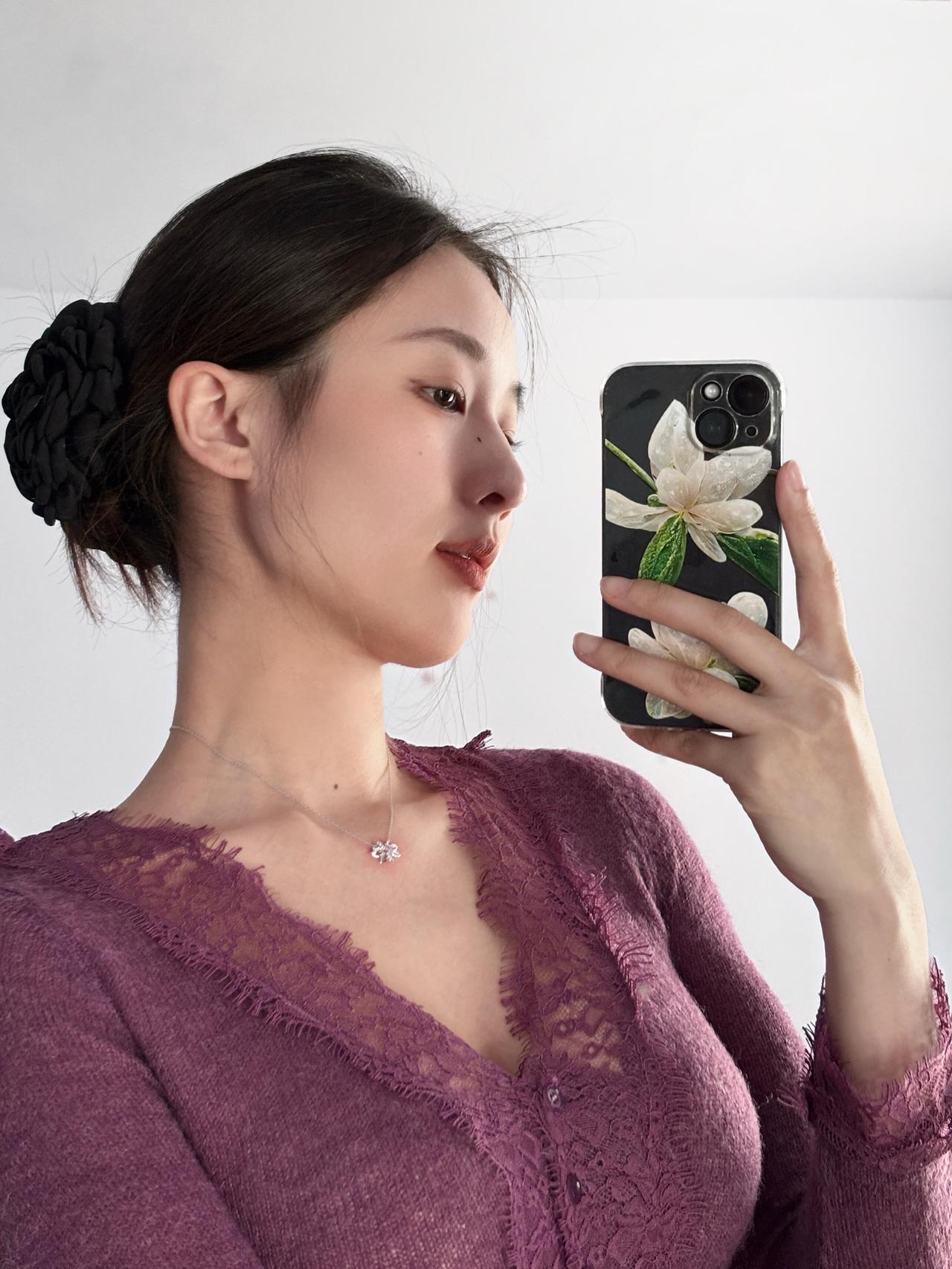 优雅发髻,精致妆容,紫色蕾丝,闪耀项链,气质满分!