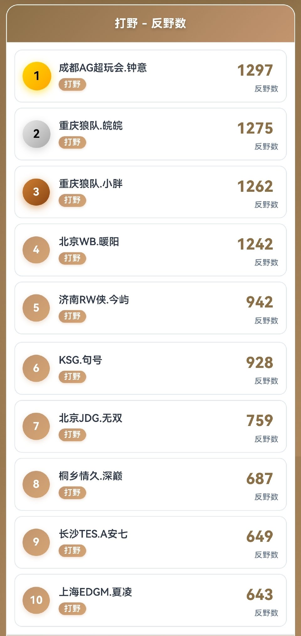 2025年度王者荣耀KPL全年数据单项奖-打野反野榜