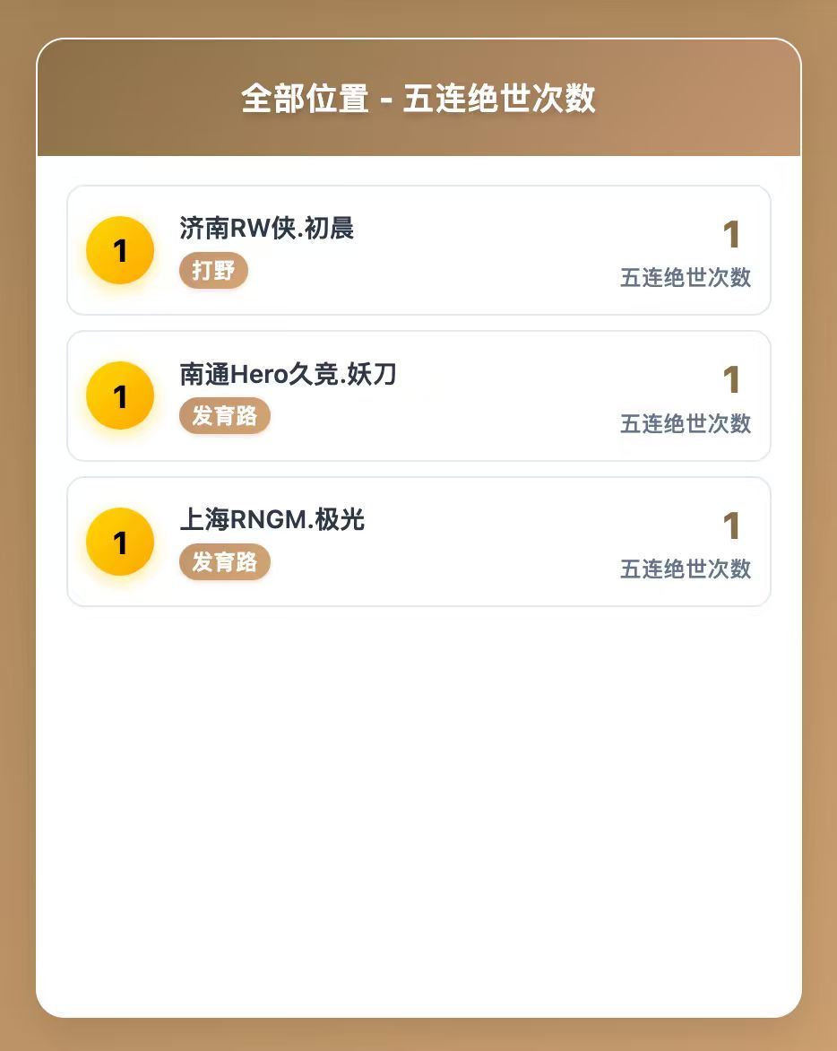 2025年度王者荣耀KPL全年数据单项奖-五连绝世榜