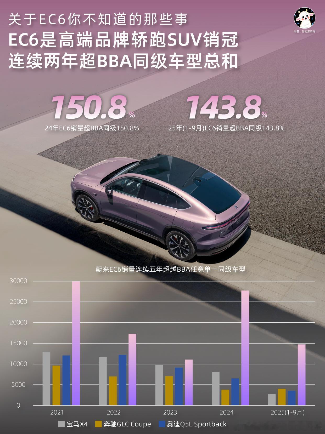 最近随着ES6的30万台交付,EC6的产品力做了一轮官宣。实际上被严重低估,无论设计优雅、硬件标准(如车窗防紫外线、防红外线能力)、智能化都是顶尖能打的。其中最容易被忽略的是2025款这次改款,表面上并没有涉及是否增加空悬、高压架构、电机这些调整,但实际上当代智能电动车最关键的是智能。尤其是高性能芯片、整车全域操作系统和智能底盘,搭载蔚来第三代智能系统「NT.Cedar S 雪松」,实现有芯有魂、高阶智能,使它和其他那些二三十万凹造型的轿跑SUV根本就不是一个档次。另外EC6是轿跑SUV,它的销量也连续五年销量力压BBA同级轿跑SUV,自2024年起更连续两年单车销量超过BBA同级车型销量总和。EC6还是中国首个突破10万交付大关的纯电轿跑SUV车型。大V聊车汽场全开