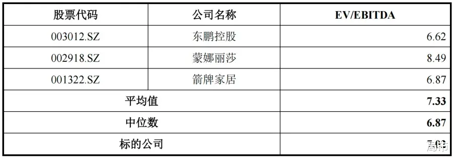 而科达制造董事会则将EV/EBITDA 价值比率作为衡量指标,在与东鹏控股(003012.SZ)、蒙娜丽莎(002918.SZ)、箭牌家居(001322.SZ)等同行业公司对比后,认为标的公司定价具有公允性。
