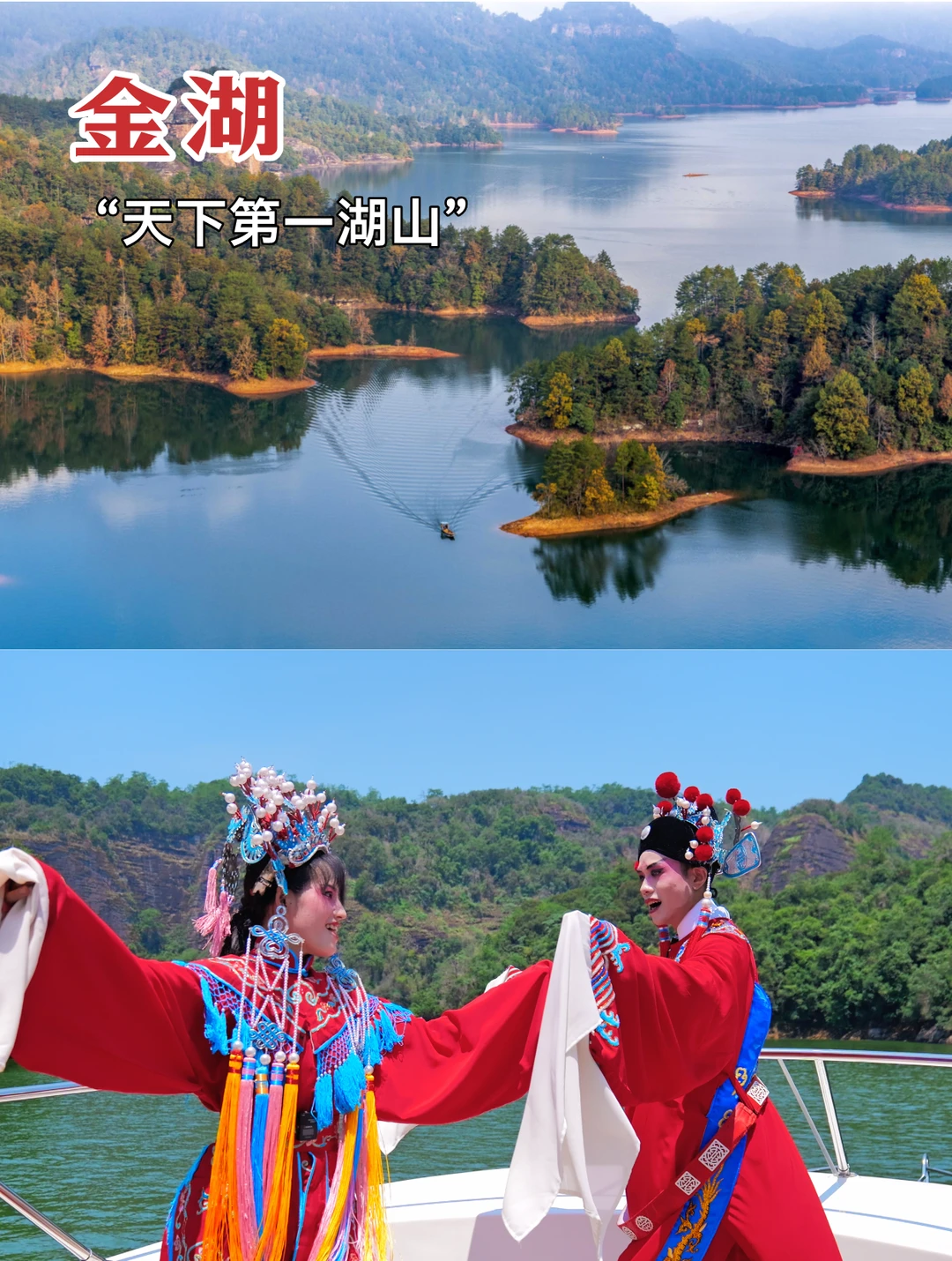 大金湖景区:终于懂了什么叫“舟行碧波上,人在画中游”。🚢 乘船漫游,看甘露寺嵌在悬崖上,过“一线天”惊叹大自然鬼斧神工。