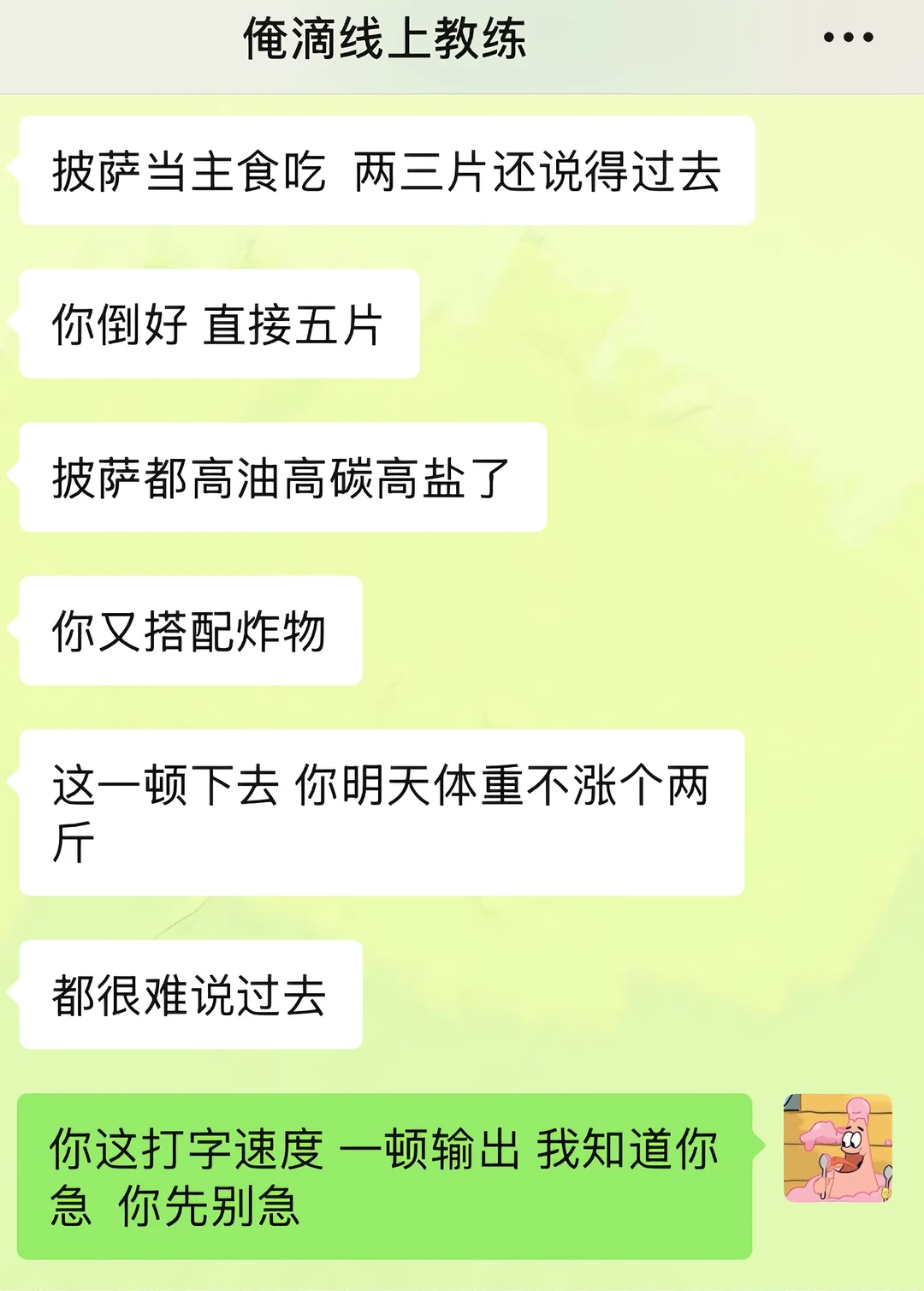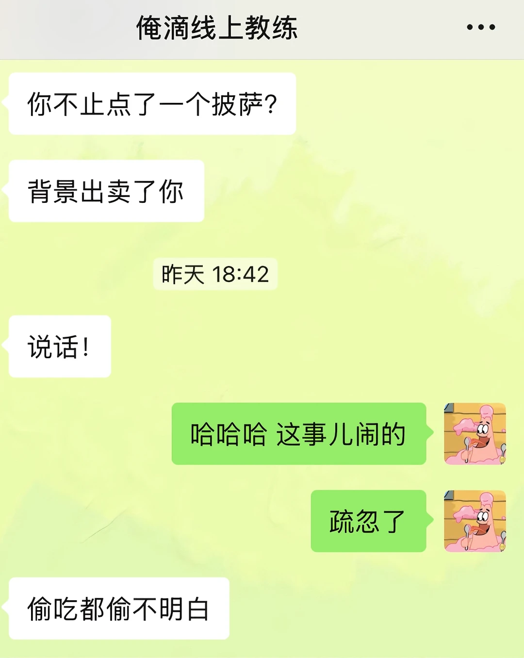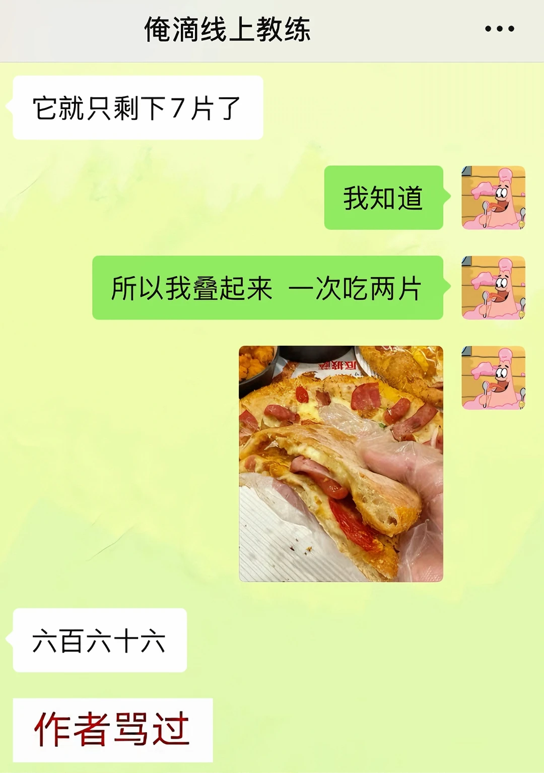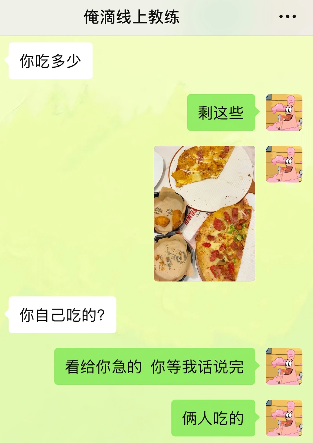 很馋披萨,昨天晚上去吃了,我还特意想了一个冠冕堂皇的理由去应付线上教练姐 结果,太过得意忘形,一心想展示自己的小聪明,把不打算展示给线上教练姐的食物,全给展示出来了,我真快被自己蠢哭了[失望R] 我隔着屏幕都感觉到线上教练姐的着急了(其实,我也挺罪恶的),所以我提出步行回家 但让我意外的是,这姐执行力如此之高,我一个不留神,明天的补救食谱还有加练全给我安排上了 好好好,线上教练姐真是一个有趣又很有用的大女人[色色R]