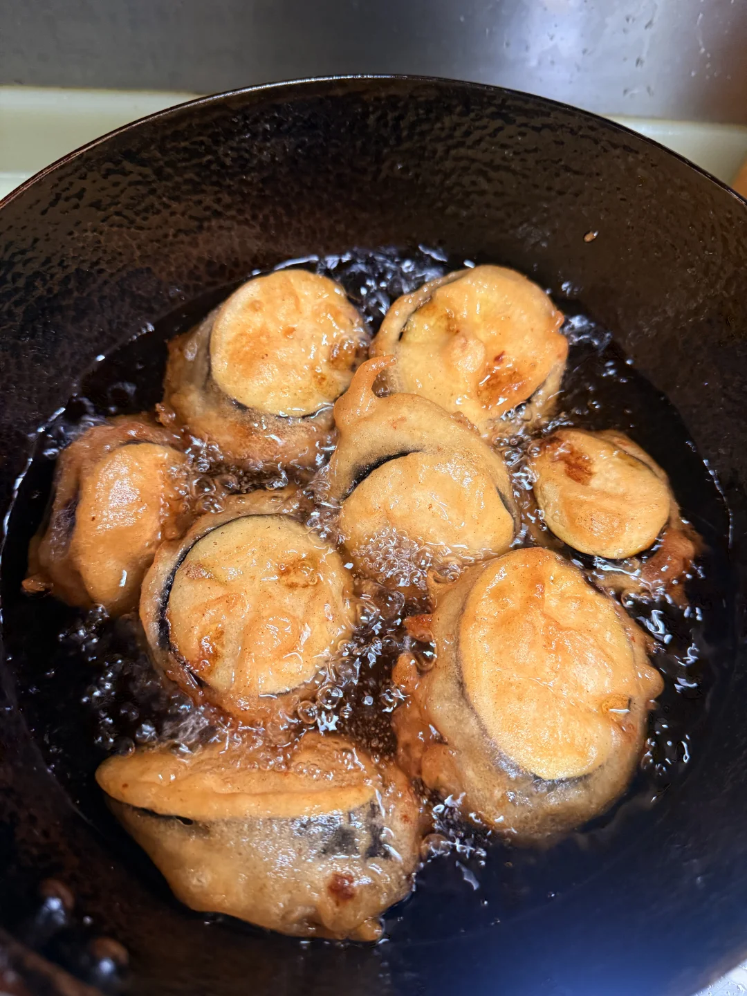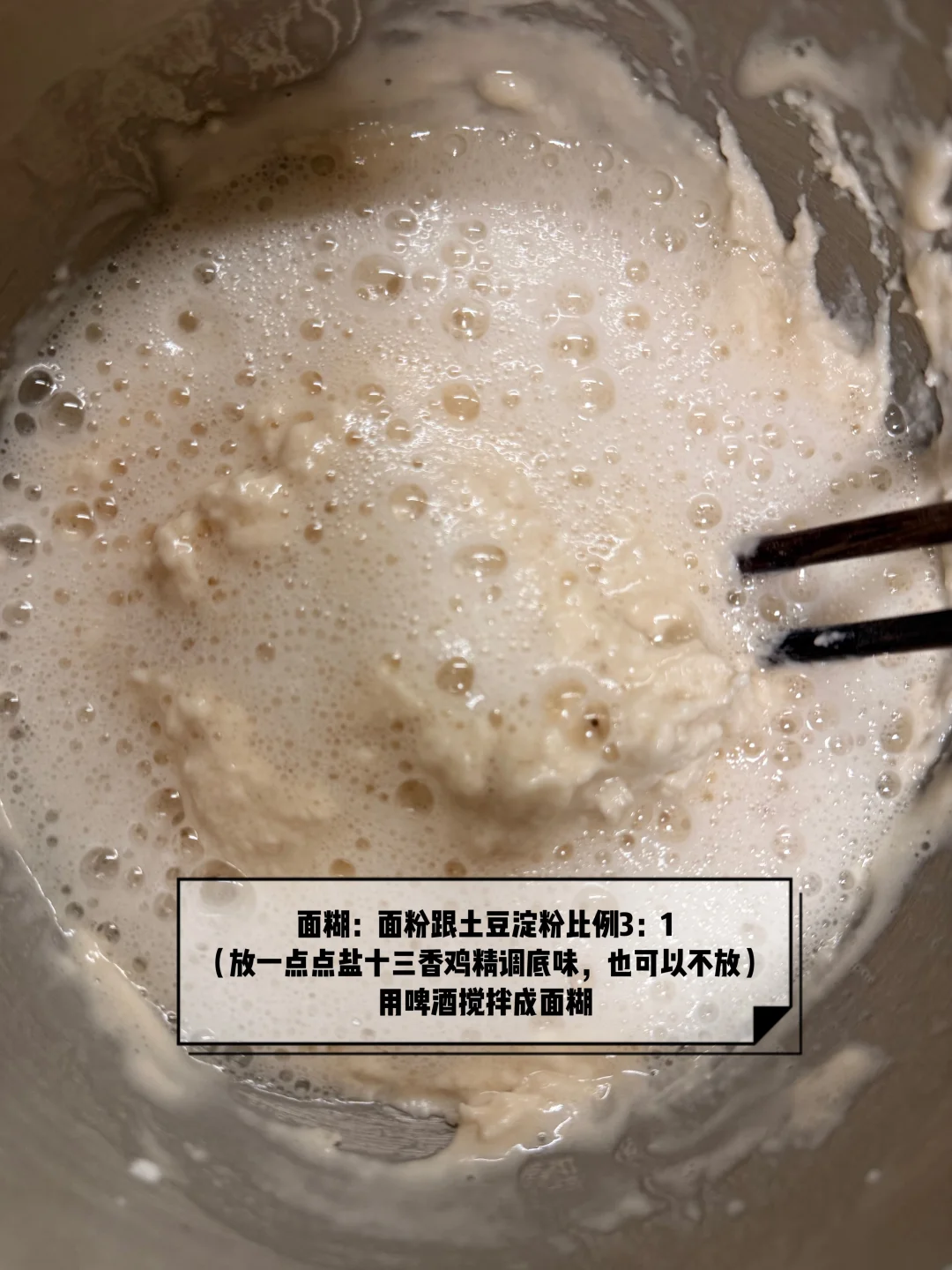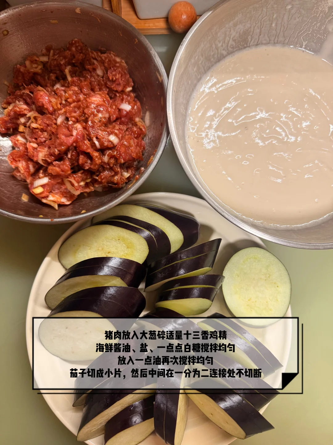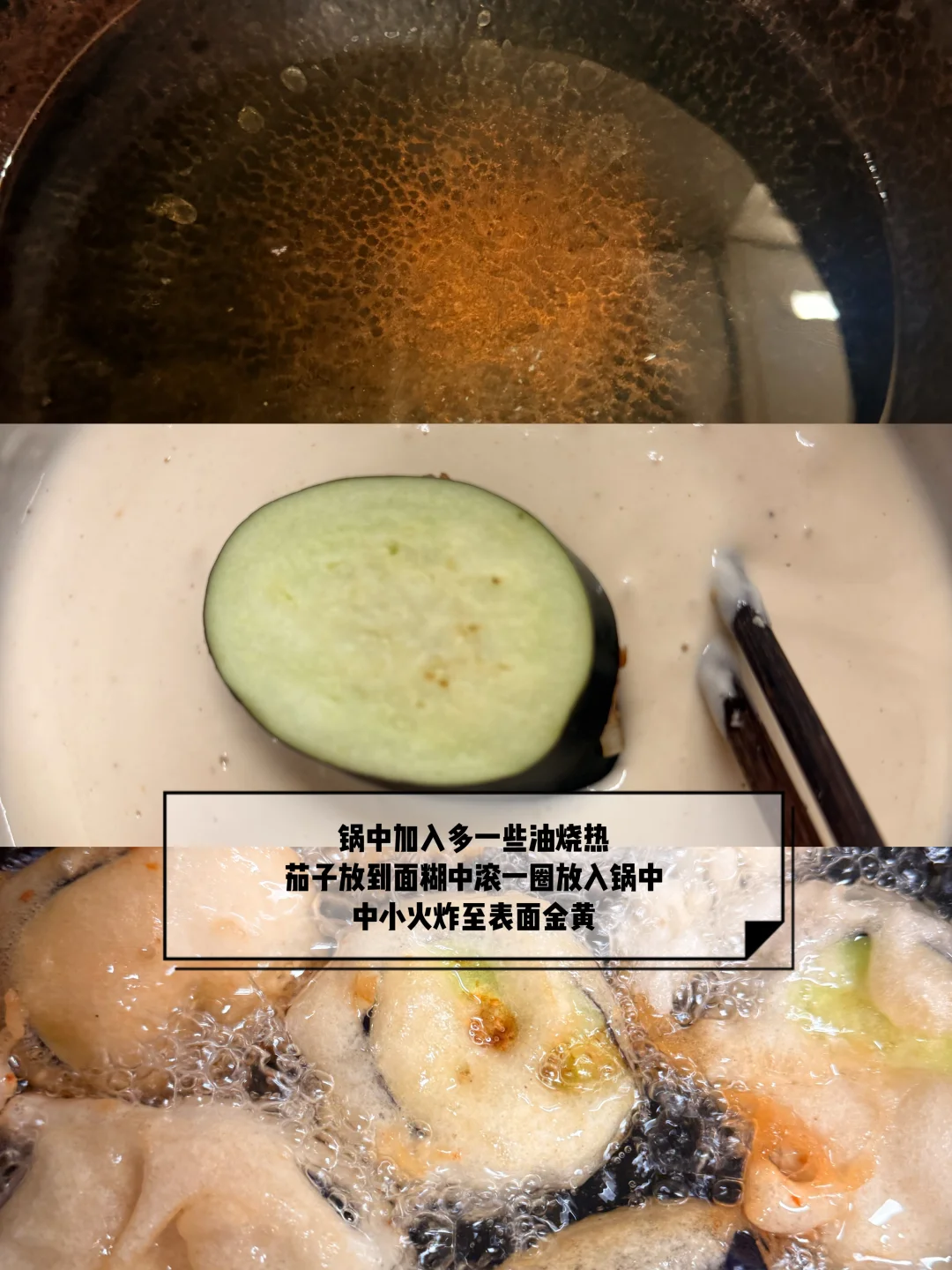 这个配方真的巨巨巨好,一点不会软 重点:茄子一定要切的薄一些不然会比较吸油 茄盒放到油锅里,定型后轻轻翻面,中途也要轻轻翻动,让两边均匀炸透,火千万别太大,不然容易肉没熟表面就焦了 姐妹们这个配方真的一点不翻车,面粉3土豆淀粉1用啤酒和面!!!