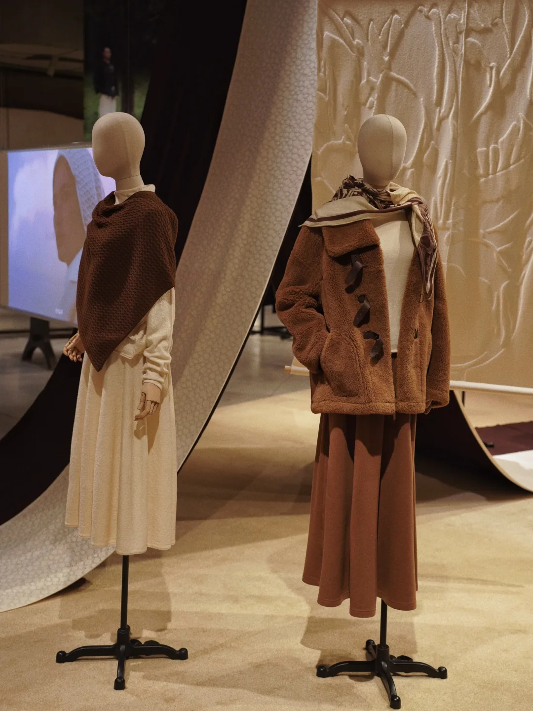 踏入太古里方所,成都例外日回顾展是我今日最为沉浸的时光。空间层次之间,光影在纱线交错间流转。 作为例外品牌的忠实用户,在此次“经纬”主题回顾展中,我再次触摸到品牌二十九年来编织的东方美学脉络。衣物以经纬为语言,讲述着例外29周年 的坚守与创新——从宋代定窑的温润釉色到失传缭绫的现代转译,从苗绣的细腻针脚到犛牛绒的温暖触感,每一根线都连接着传统与当代的对话。 展墙上“成都方所例外日回顾展”的字样下,我看到许多如我一般的例外女性:身着充满个人气质的衣物,指尖拂过织物上镂空绣的纹理,在一件件充满独特设计的衣饰前驻足。 我想,其实我们在此寻找的不仅是服饰,更是一种精神共鸣——独立却不锋利,浪漫而又沉静。正如那条我喜欢上的纹样特别的缭绫方巾,经纬交织间,既是技艺的传袭,亦是东方女性骨子里的韧性与优雅。 二十九载,例外以衣载道,将文化沉淀为日常的呼吸。当我们穿上这些衣物,便已参与了一场跨越千年的文明叙事,在经纬交错中,成为自由精神的续写者。
