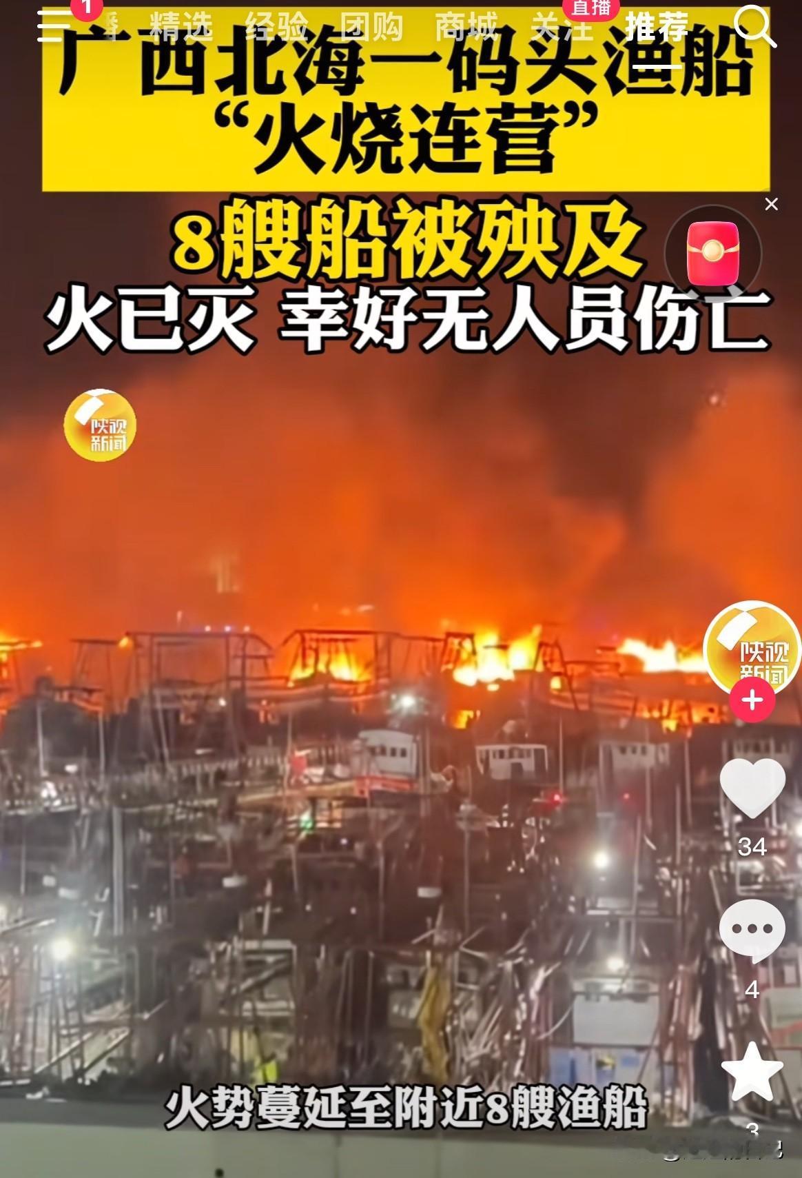广西北海桥港码头一渔船起火,连带殃及其它船只,共造成8艘渔船被火烧毁。 最近我们的火情有点多,我都有点怀疑是有人故意纵火,我们真得小心点了,不然怎么会这么凑巧,连续几天到处都是火情呢。 你们认为我是多疑么?