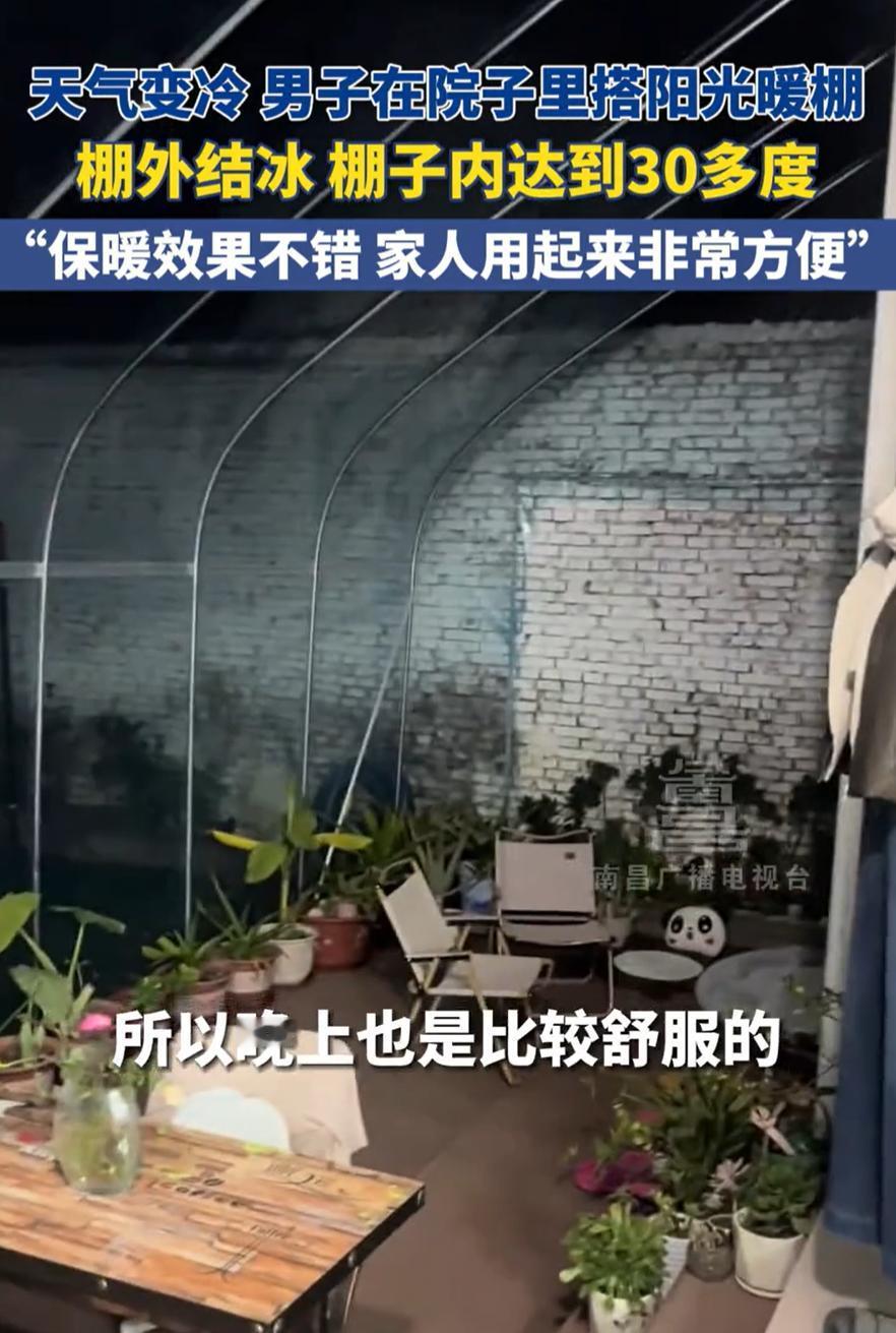 一个石家庄的男子最近在自己院子里花了一千多块钱搭了个塑料暖棚。他说最近天气冷,老人不愿意多开空调,就想找个便宜又暖和的办法。结果搭完后发现效果挺好,白天棚里最高能到三十多度,屋子里也被带动暖和了,晚上还能留着余温。 有网友说塑料棚晒太阳会不会有味道,或者闷得慌。他解释说材料买的是正规的耐晒膜,晒了也没啥异味,棚子开着缝能通风。另外他不会整天把棚子关严实,主要是靠白天吸热晚上放热,人也不在里面长时间待。 现在这个暖棚还在用着,有人说他聪明,也有人说担心长期效果。反正他自己觉得值这个钱,至少冬天省了不少电费。