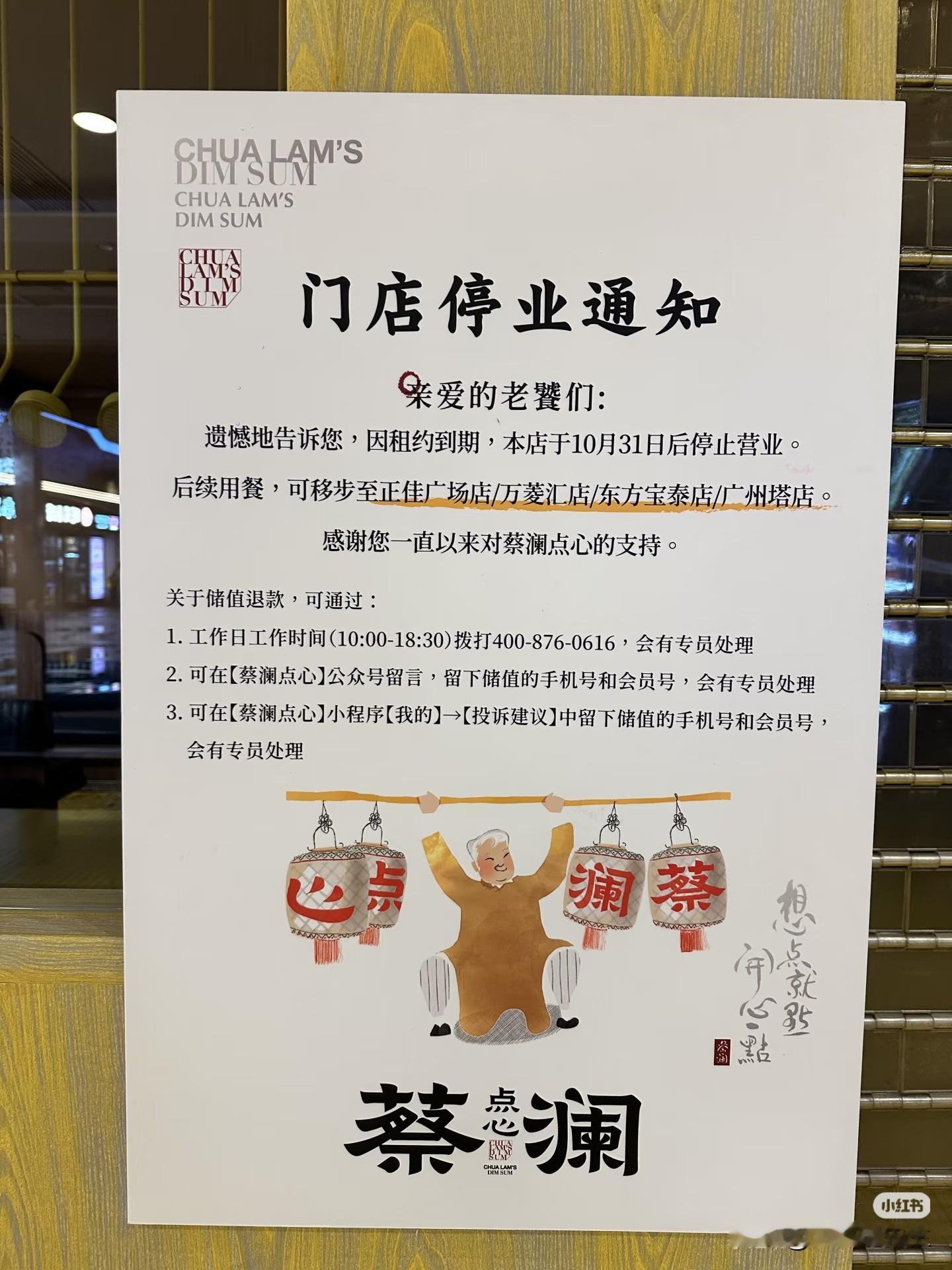 广州网友报料,广州花城汇南区的蔡澜点心也闭店了! 因租约到期,蔡澜点...