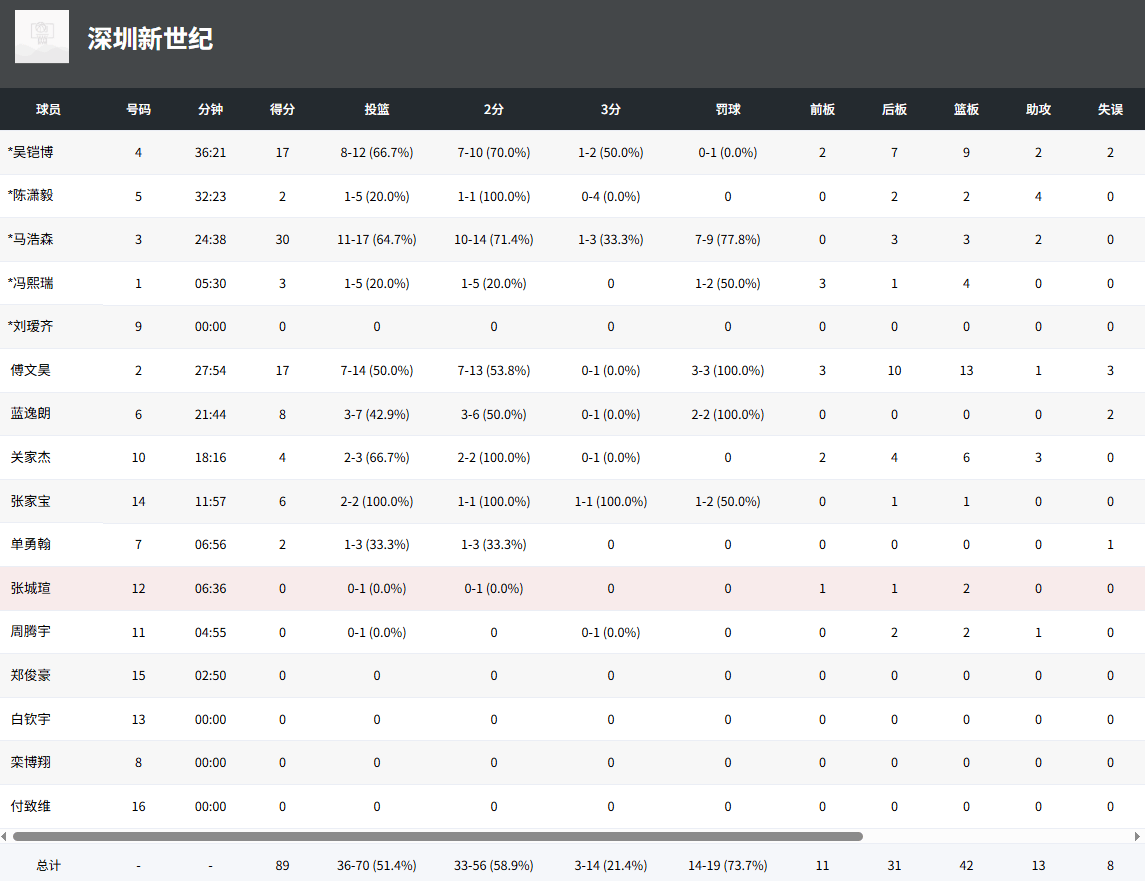 深圳:马浩森30分、傅文昊17分、吴铠博17分