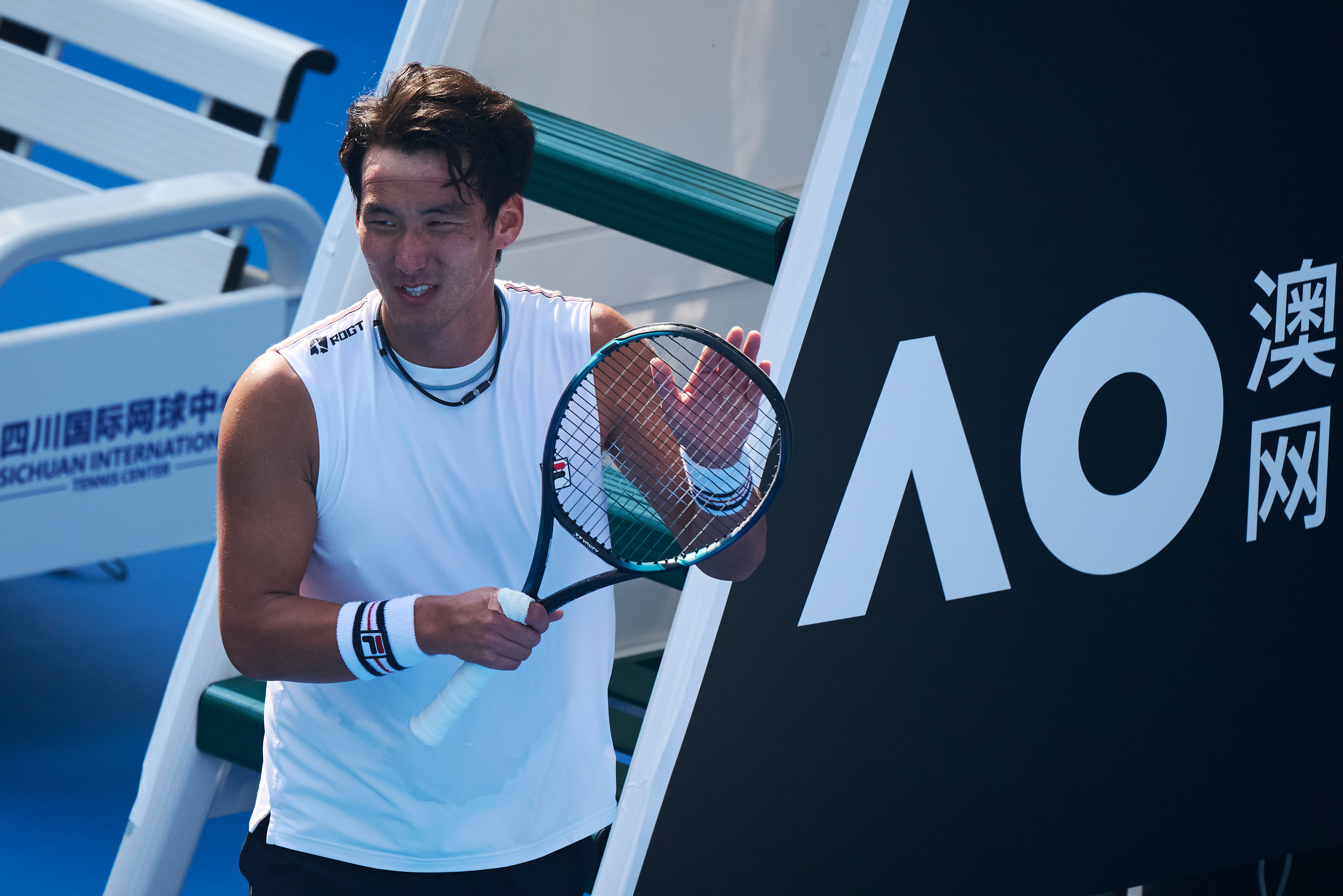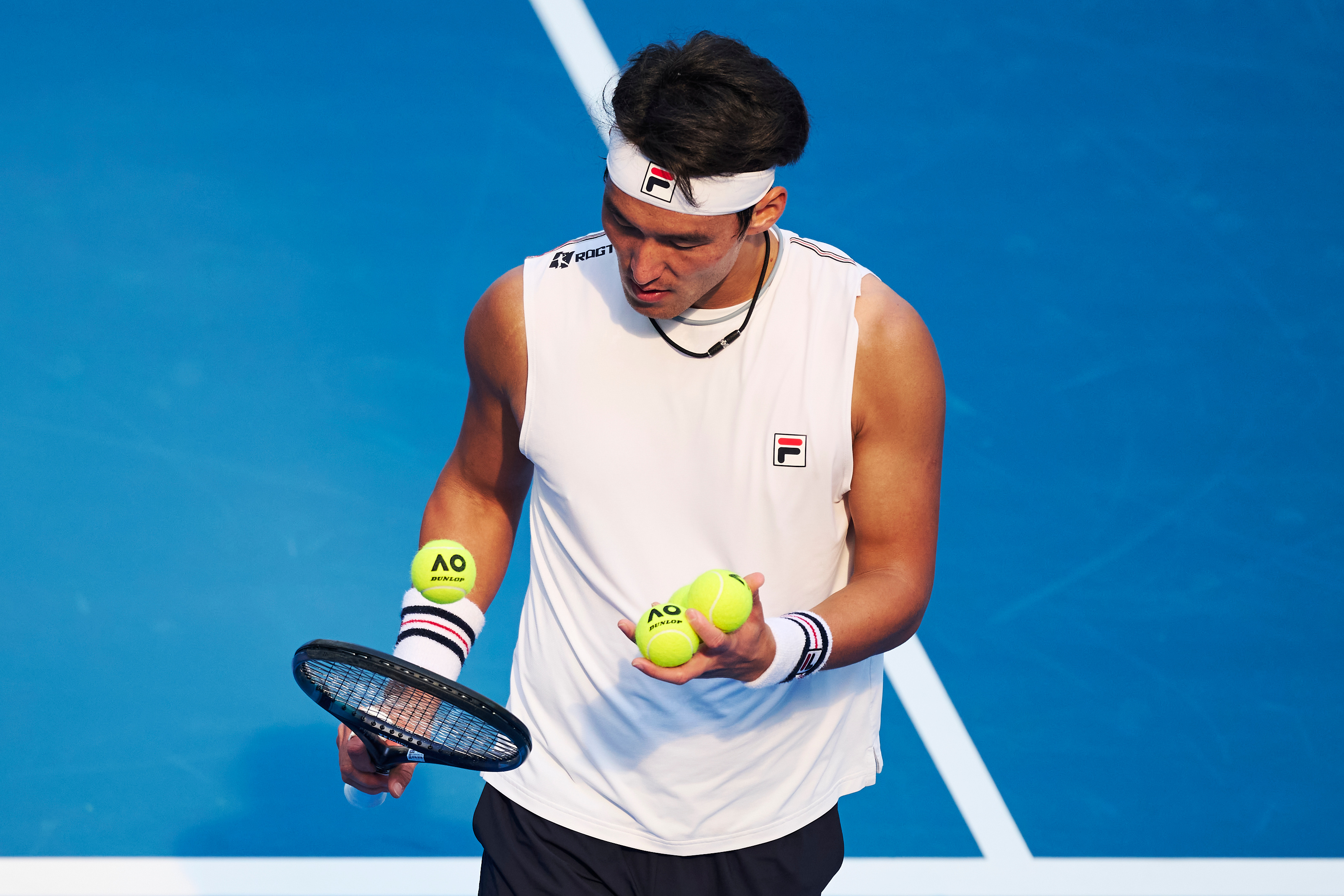 澳网蓝的成都球场,布云朝克特追逐光影追逐梦想!祝好运!摄影:记者 李建艺拍于澳网外卡赛澳网2026网球talking大会布云朝克特
