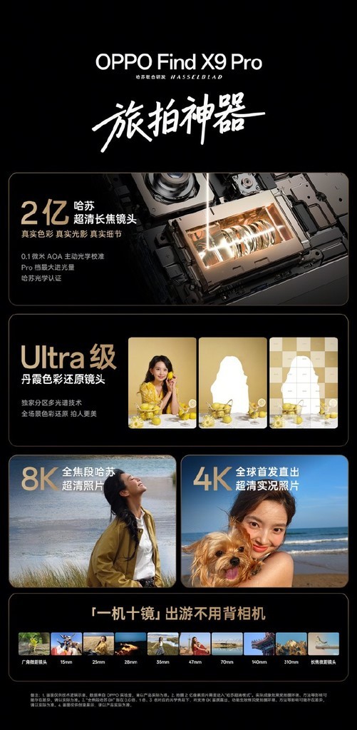 OPPOFindX9系列以三大清晰画质技术构成核心能力:哈苏2亿超画质长焦提供专业级长焦质感;索尼LYT-808大底带来更高进光量与更低底噪;LUMO超像素融合引擎统一影调,减少涂抹与噪点,让人像、风光与夜景更接近相机成片。