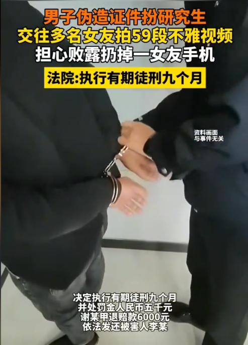 河南一女子网恋遇骗子, 假学历拍隐私59段, 手机被抢丢湖获刑。 2024年5月,22岁的李某在濮阳认识了自称南京某大学在读生谢某。 两人交往4个月后同居,期间谢某连续多天带李某住宾馆。 10月6日,李某偷看谢某手机发现他和多个女生暧昧聊天,并存有59段与不同女性的私密视频。 谢某抢走李某手机并扔进湖里,李某报警后发现谢某用了假身份证和学生证。 警方查实谢某用虚假身份骗多名女性,其将李某的视频发微信群。 法院审理认为谢某伪造证件、毁坏手机(价值5800元)等行为构成三宗罪,最终判处有期徒刑9个月,罚金5000元。 谢某家人赔偿李某6000元未获原谅。 该案中多名女性被欺骗感情,视频涉及人员可能面临长期困扰。
