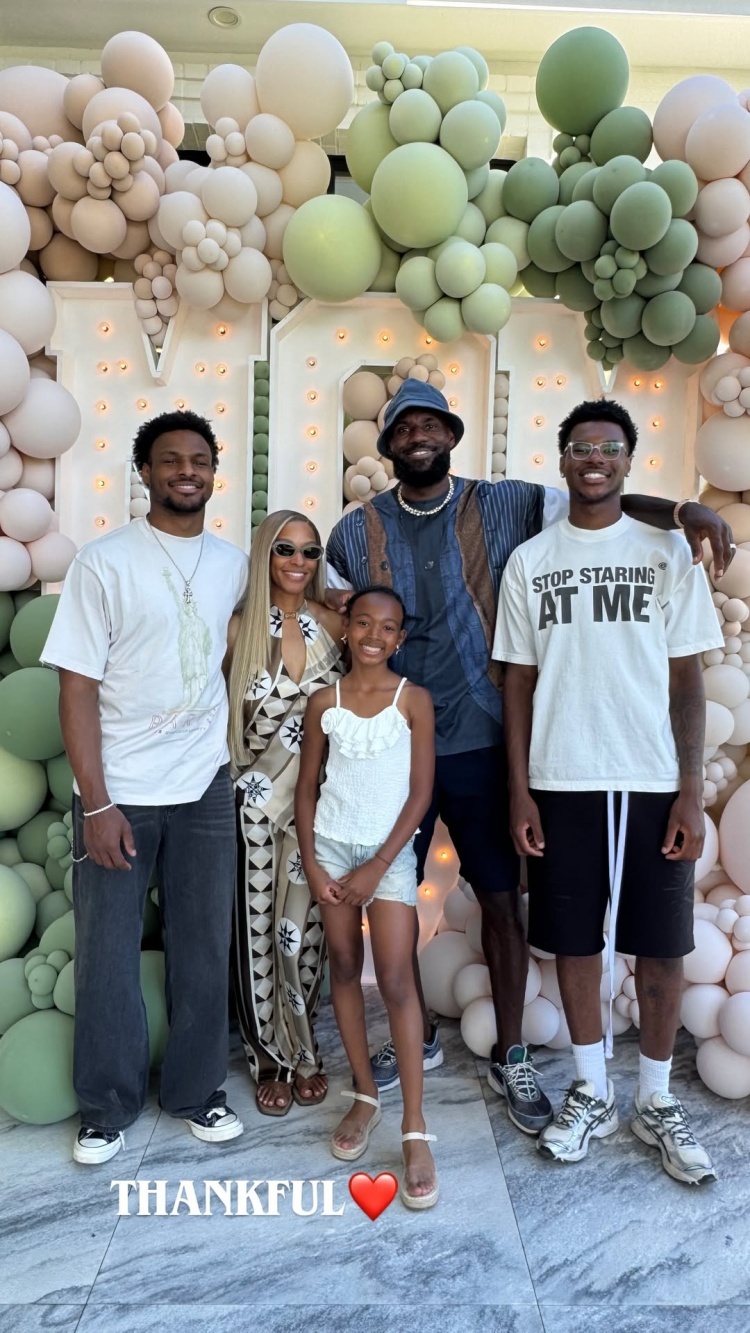 詹姆斯家感恩节全家福,布莱斯明显比布朗尼高,小zhuri这大长腿,感觉未来也不会