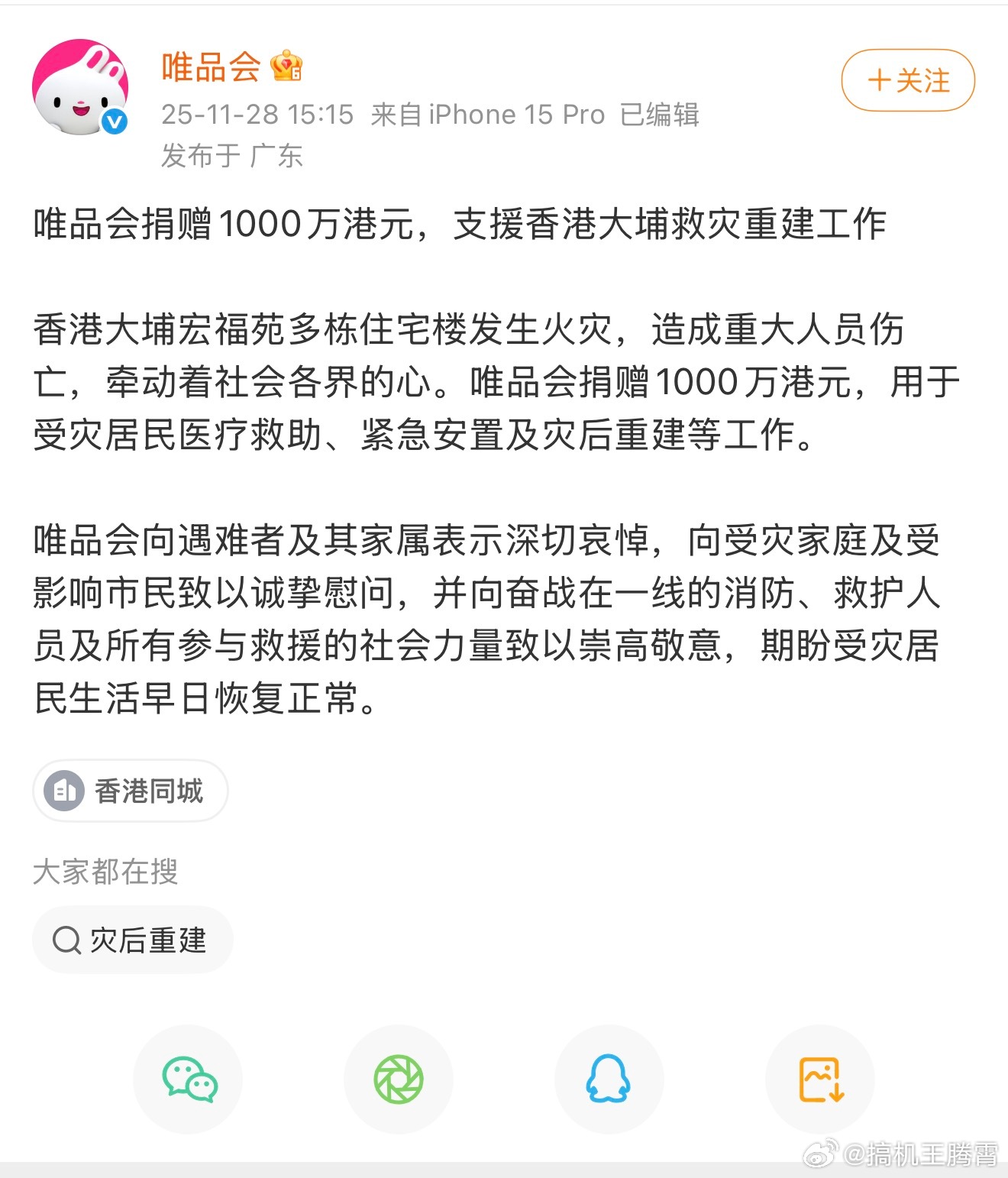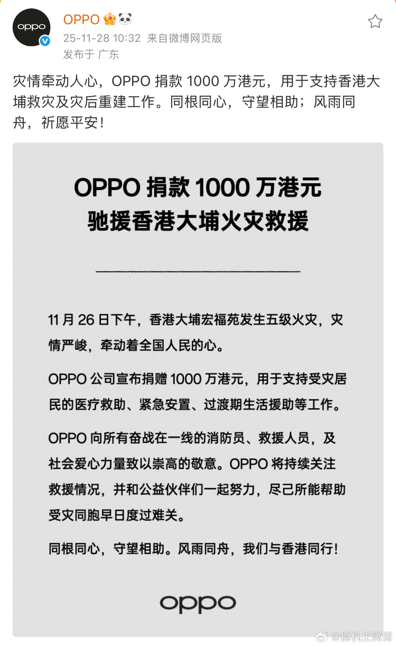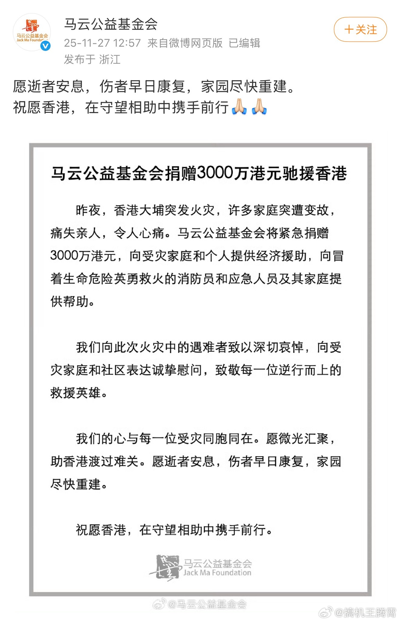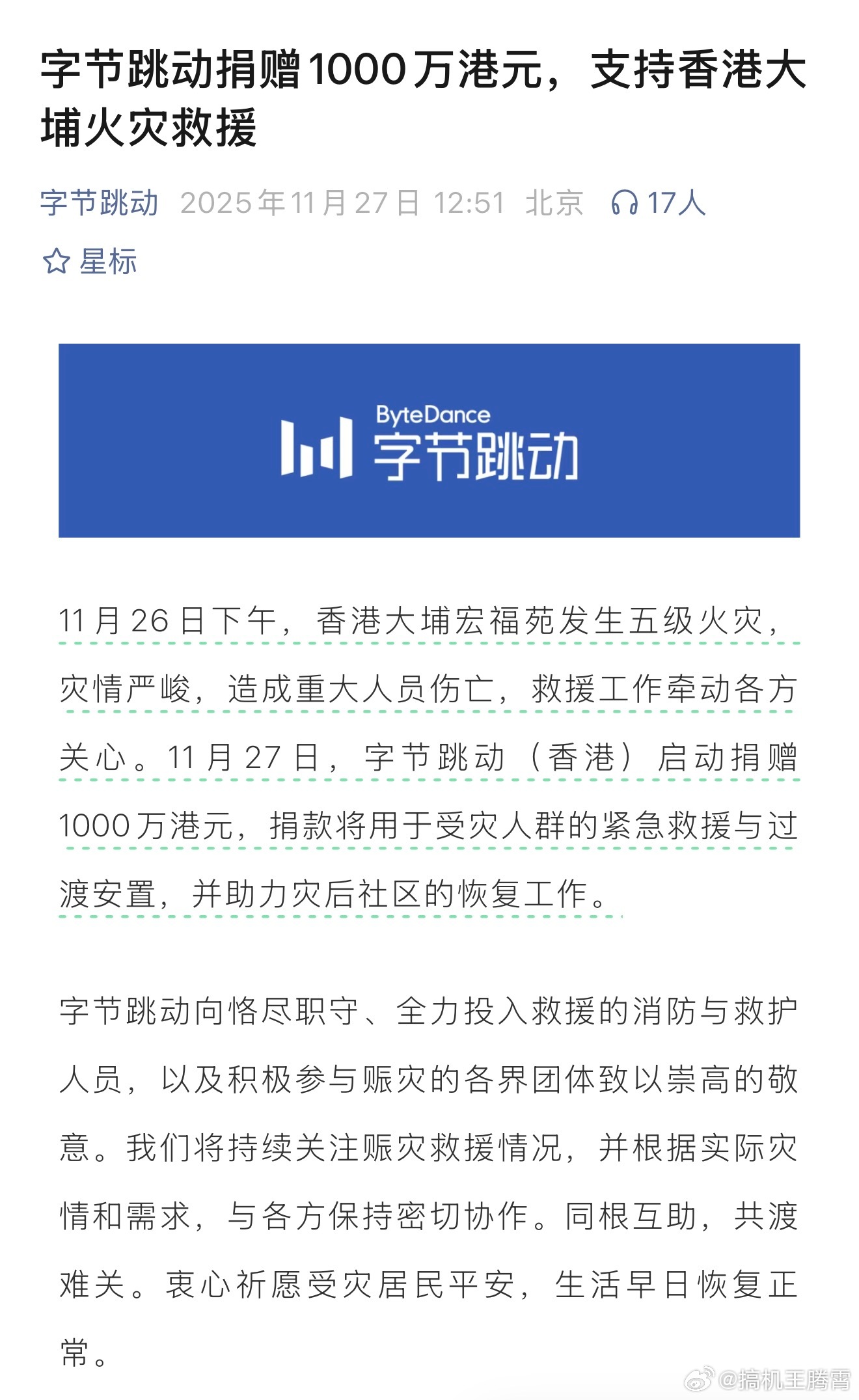 【截至目前各大企业驰援香港捐款不完全统计】阿里巴巴首批捐款2000万港元蚂蚁集团 + AlipayHK首批捐款1000万港元马云公益基金会捐款3000万港元腾讯基金会首批捐款1000万港元 + 追加2000万港元字节跳动捐款1000万港元唯品会捐款1000万港元百度捐款1000 万港元OPPO捐款1000万港元vivo捐款1000万港元网易捐款1000万港元比亚迪捐款1000万港元吉利控股集团 + 李书福公益基金会捐款1000万港元小鹏捐款500万港元赛力斯集团捐款500万港元滴滴公益首批捐款1000万港元…………真好,感谢这些捐款企业,这就是社会责任感的体现,相信有了这些企业做后盾,全国人民同心聚力,香港一定会平安度过难关