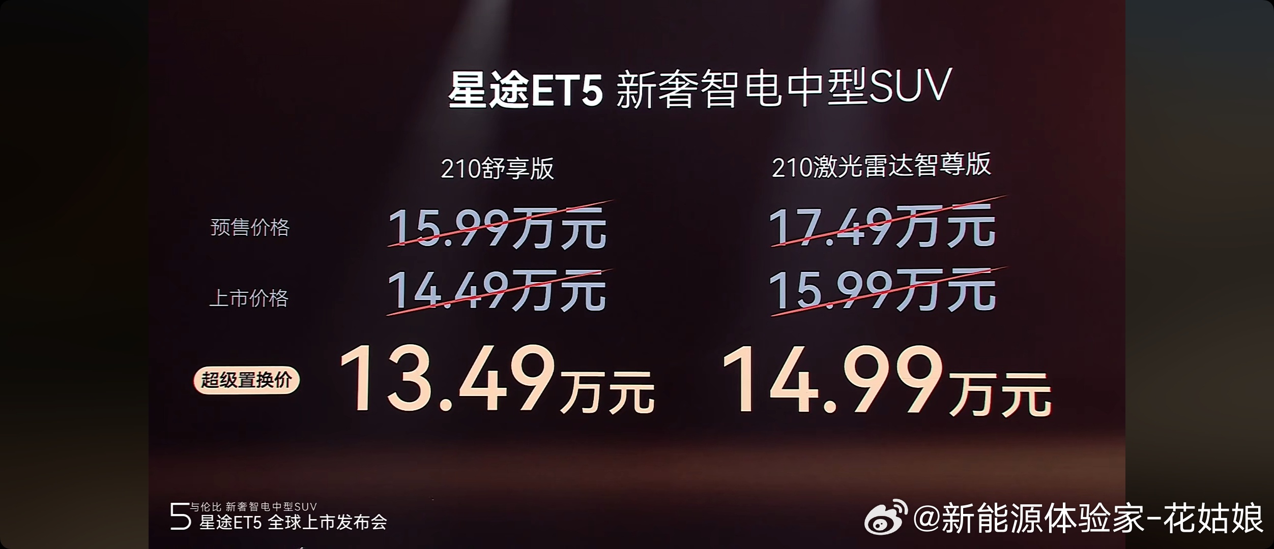 半价ET5来了。。。星途ET5的定价直接把自家的风云T9给“卷”进去了。星途ET5的超级置换价最低到13.49万,而风云T9的210超长续航版指导价要18.39万,就算优惠后也得16.39万。这意味着定位更高端的星途ET5,价格反而比风云T9的高配版还低,直接形成了内部竞争的局面。奇瑞汽车大v聊车新能源汽车
