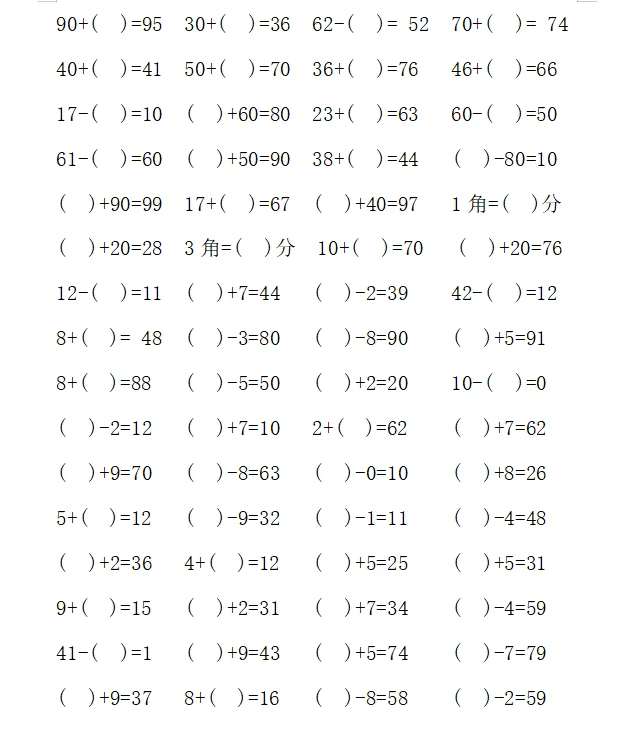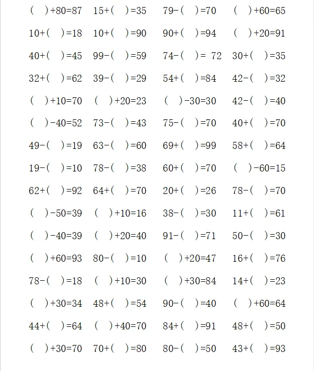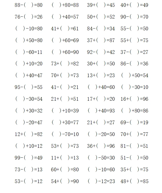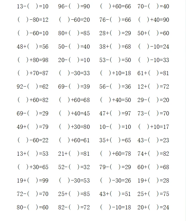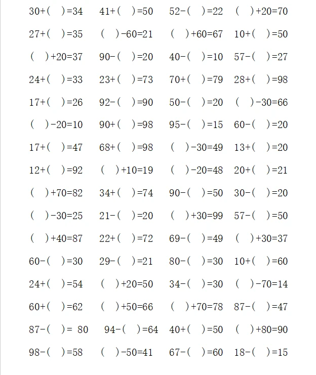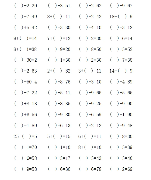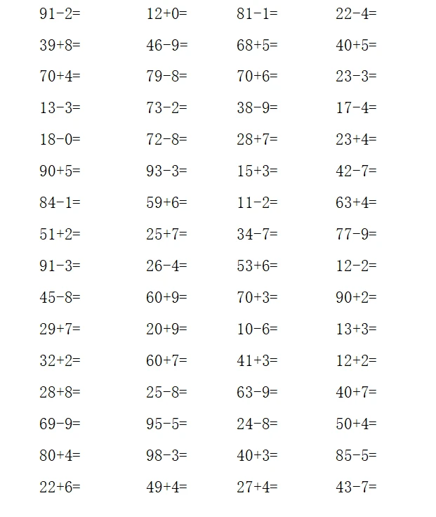 一年级计算1000题—④