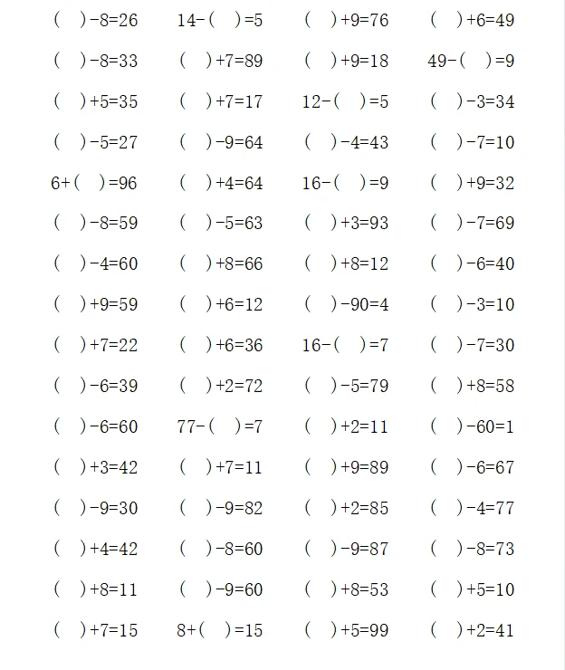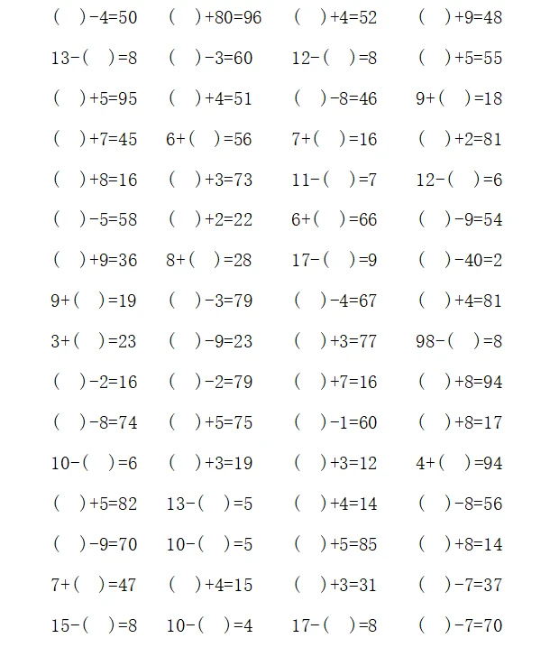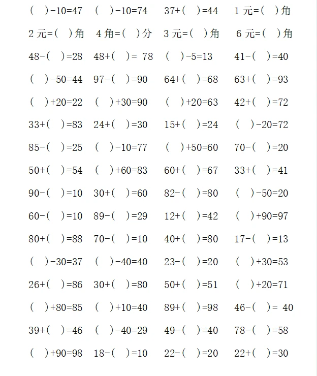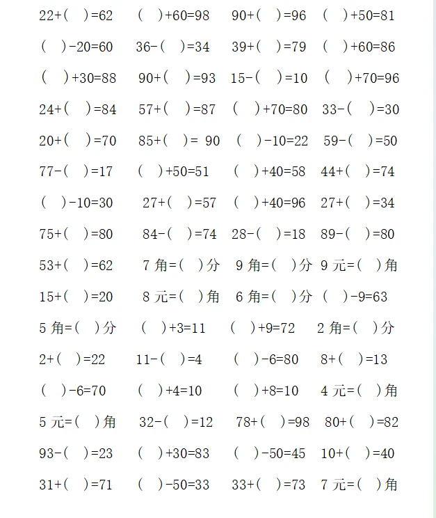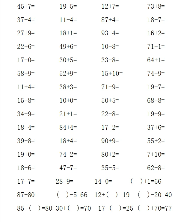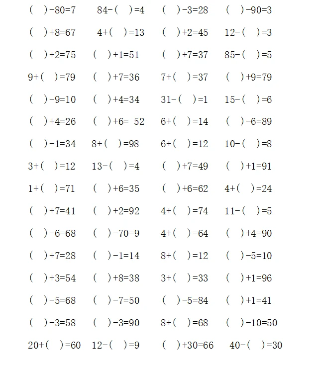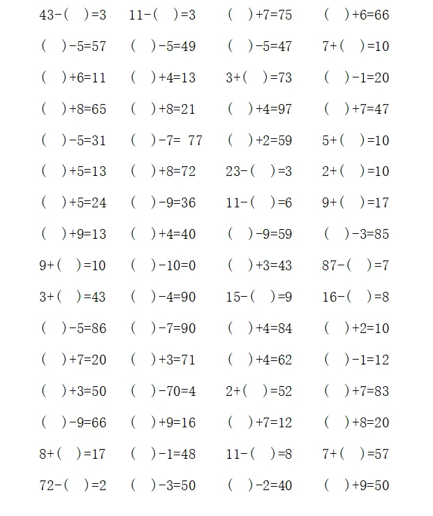 一年级计算1000题—④