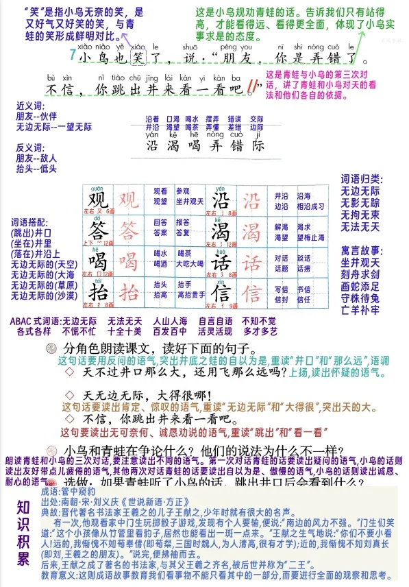 二上语文第11课《坐井观天》详细笔记