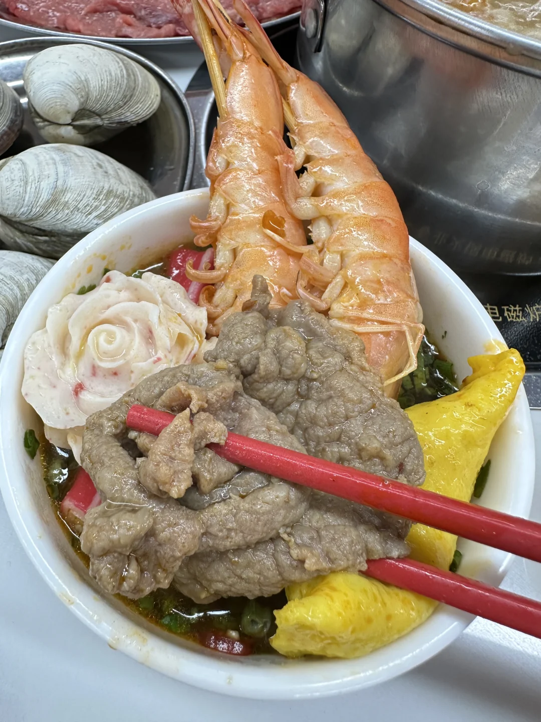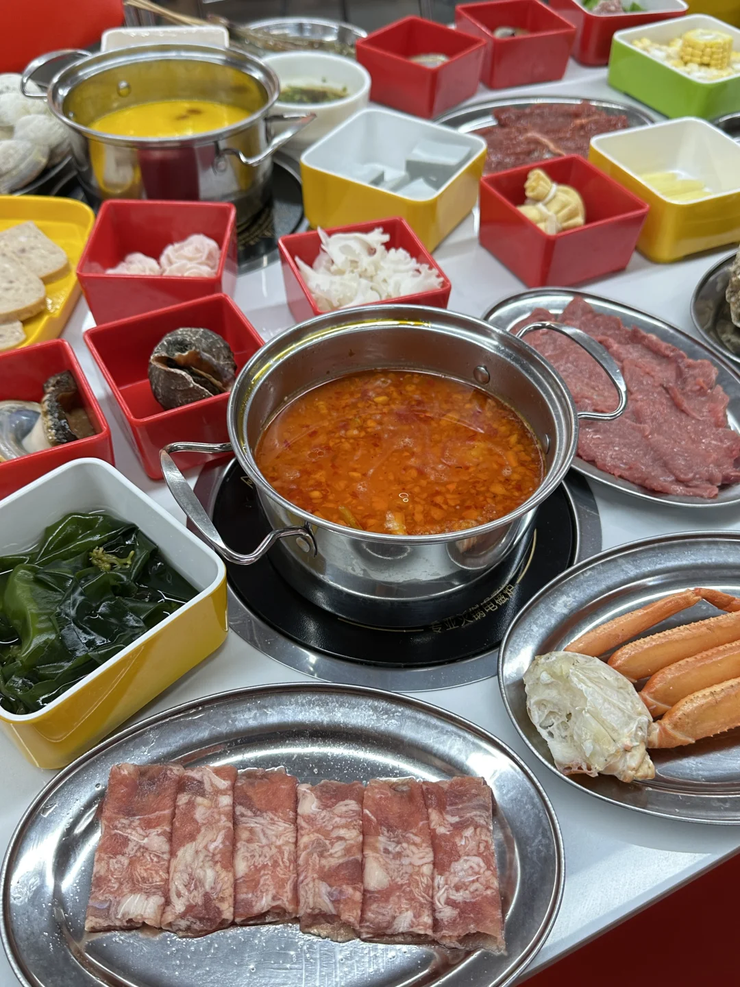 以前感觉金贸商城里吃食挺一般的,这次来感觉变了。因为发现了这家和富贵海鲜火锅 这家很有特色,大排档感觉,空间大很热闹,服务员有点忙不过来,但还是能照顾到菜品,收盘啥的都比较及时。 有海鲜、肉类、蔬菜。海鲜🦐很受欢迎,毕竟种类很多,看着也很新鲜,大闸蟹🦀蛏子鲍鱼海星啥的应有尽有,每种都把盘子摆的满满当当的。 一人一个小锅,不管是一个人吃还是带家人朋友都很合适,丰俭由人。而且锅底种类也多,能符合不同口味,真的👍🏻