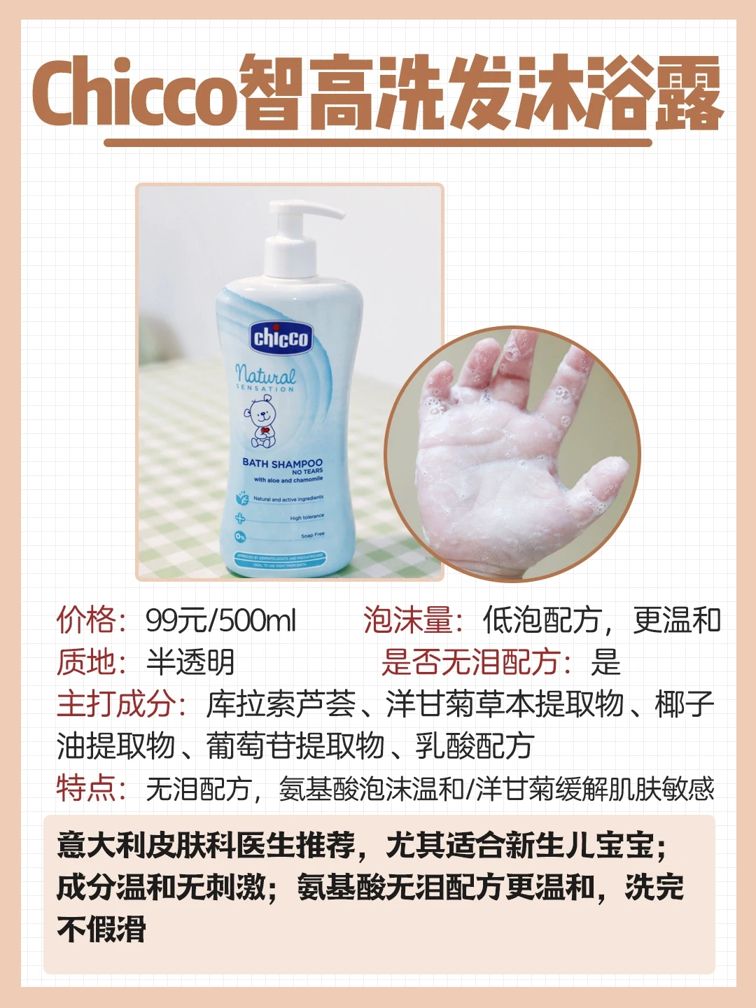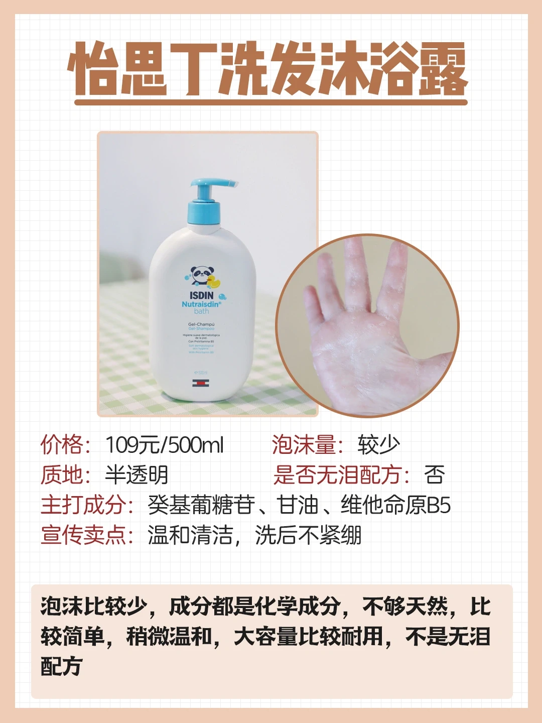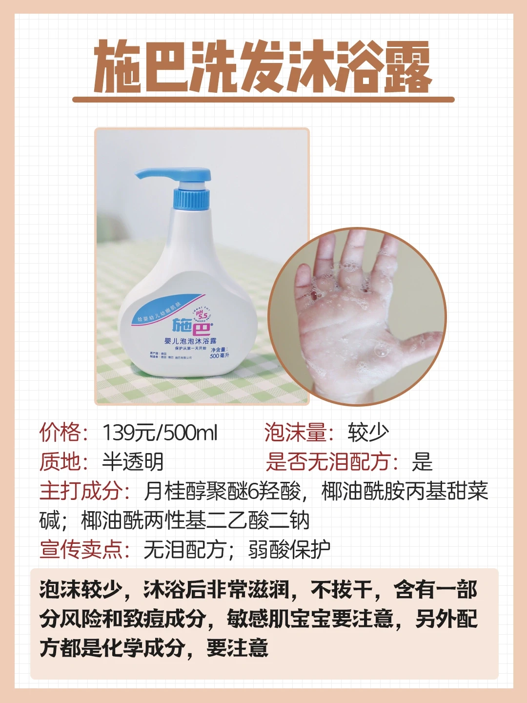 泡沫少好冲洗,洗完敲滋润不拔干,配方大多都是化学🧪成分,含🈶️一部分风险和致痘成分,敏感肌宝宝要注意