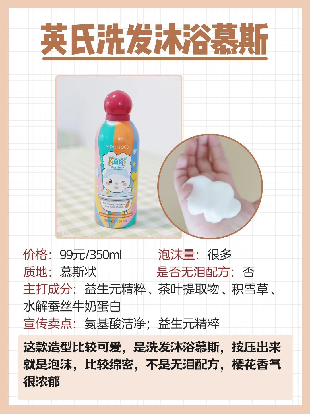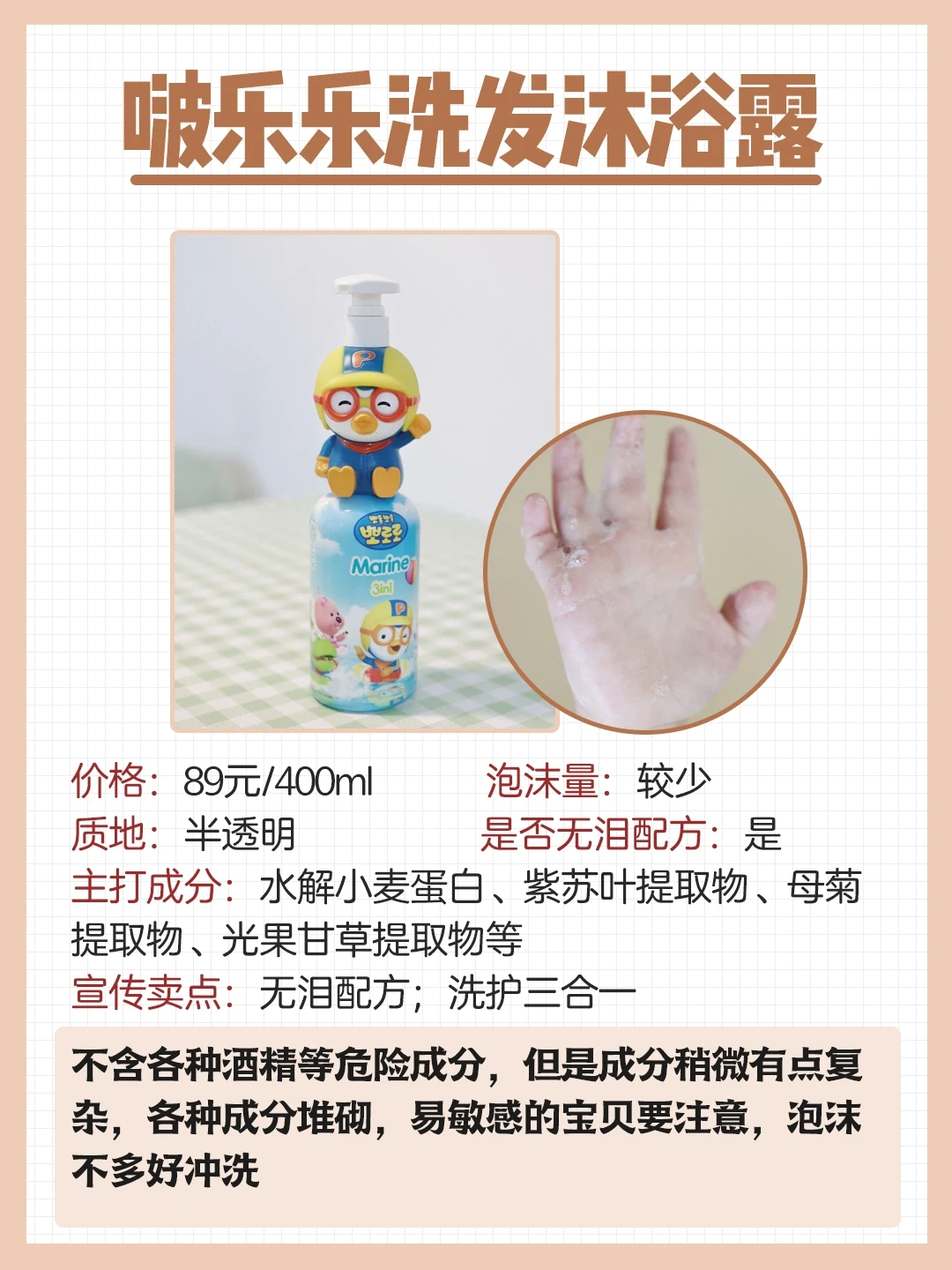 造型特别可爱,泡沫不多容易冲洗,不含酒精等成分,但是各种成分堆砌,易敏感的宝宝要注意哈
