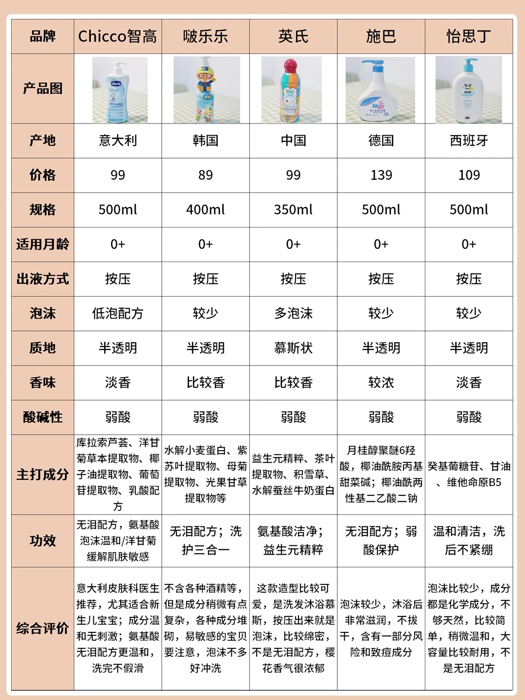 今天也特地把Cyndi用过的5款洗发沐浴露做了个实物测评,更能直观的了解到底怎么给宝宝选择儿童沐浴露🧴呢