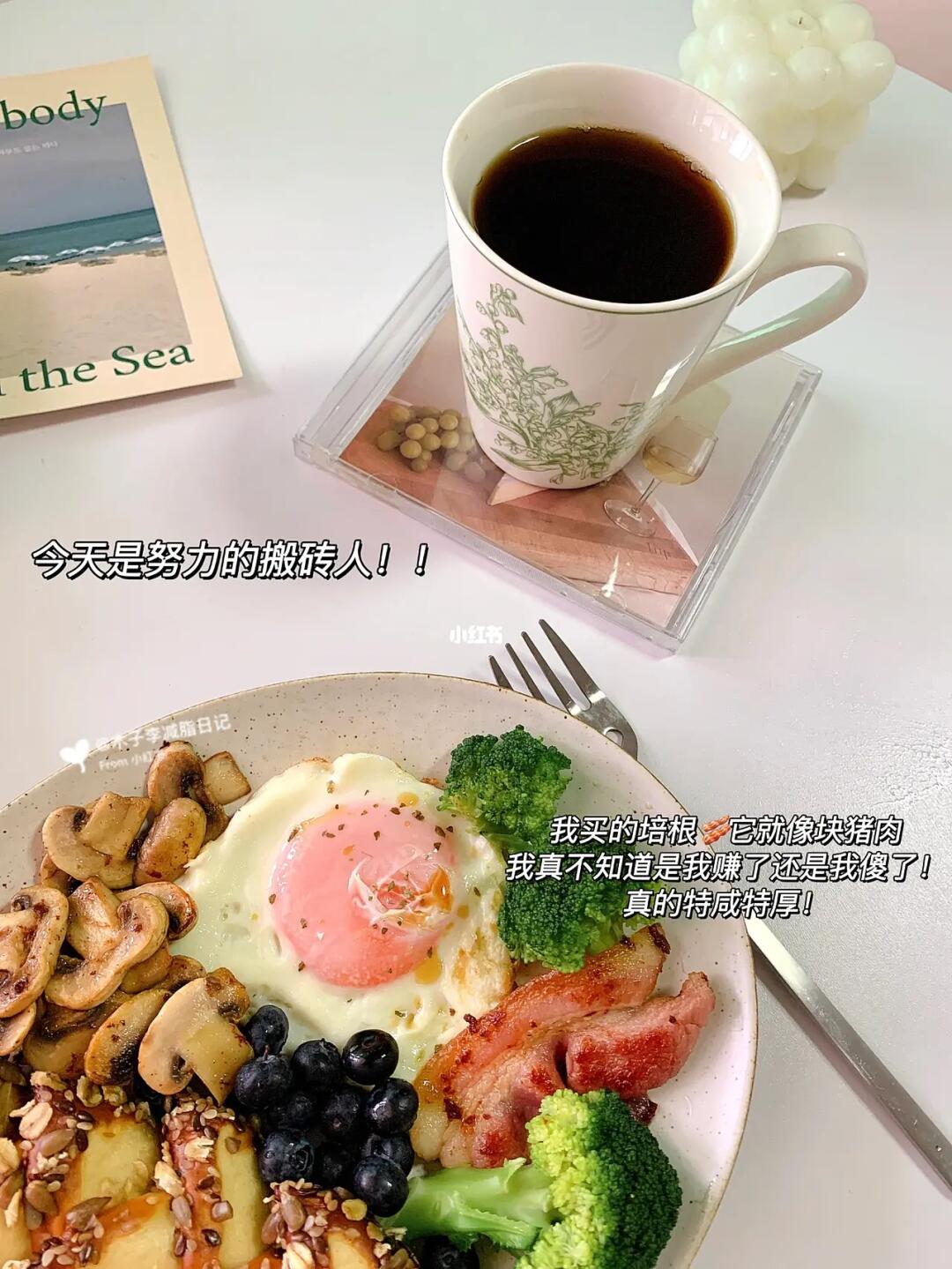 2022.6.5|减脂379天|减重30斤 🔸初始体重120斤 🔹现重89斤 🔸目标85斤 🔹身高150cm —————————————————————— ☀️早餐:黑咖啡☕|碱水棒|西蓝花|培根🥓|口蘑|煎蛋🍳|蓝莓 💧喝水2000ml➕ 🏃♀️运动:不动 ———————————————————————— 我瘦就是为了吃好多好吃的呀~ 我什么都不说了!