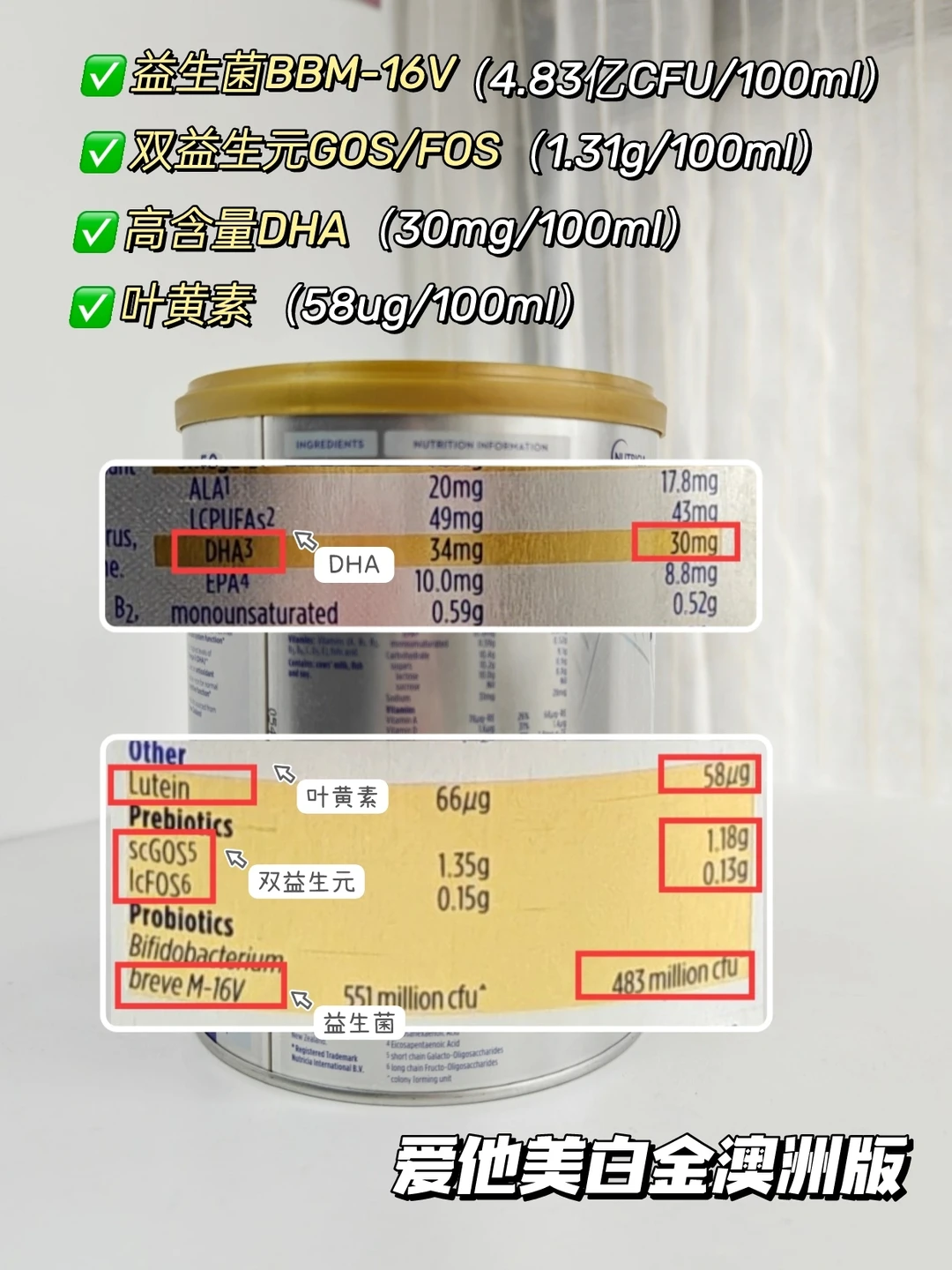 🔸爱他美白金澳洲版则是 早阶营养配方天花版💯