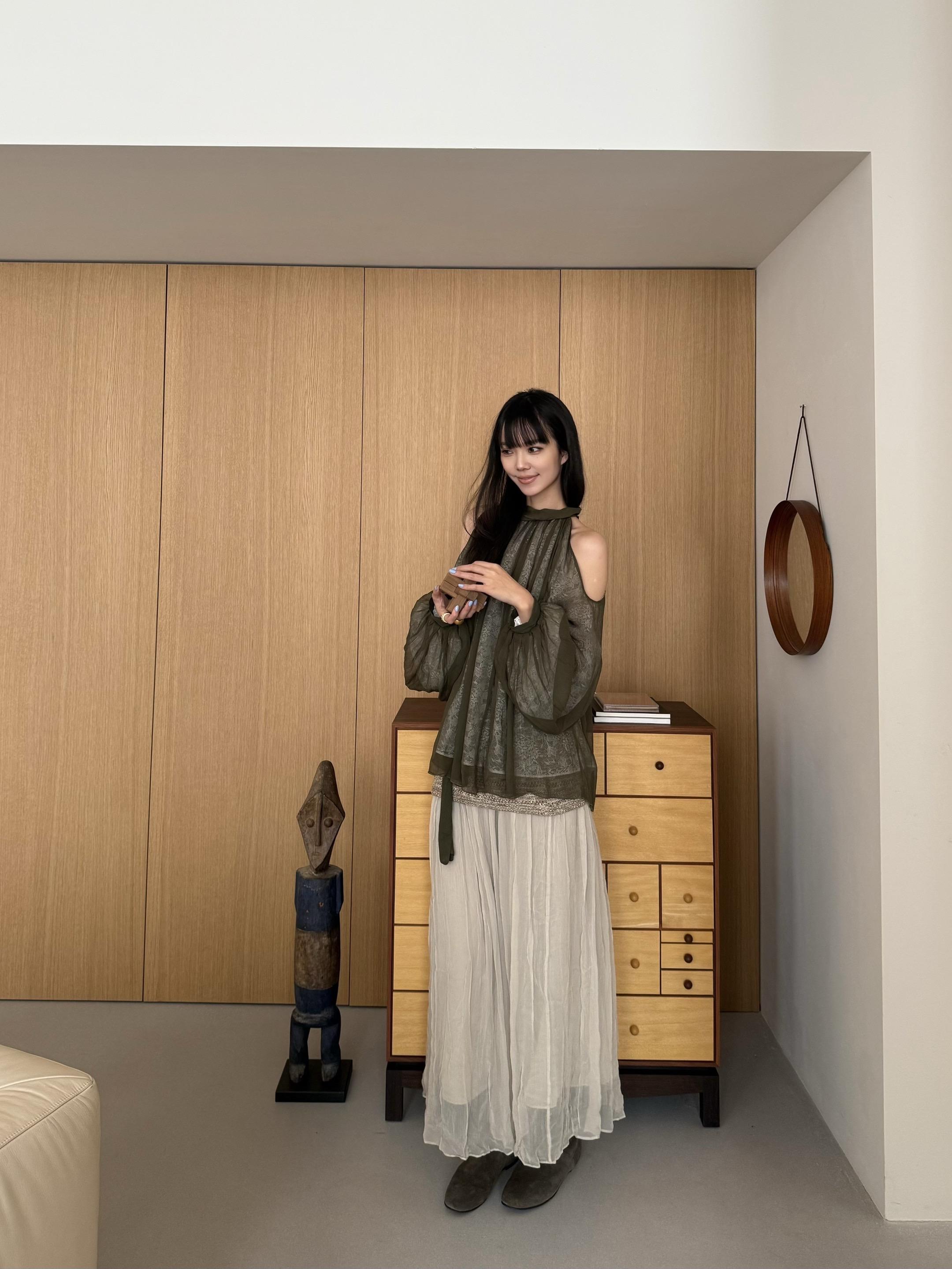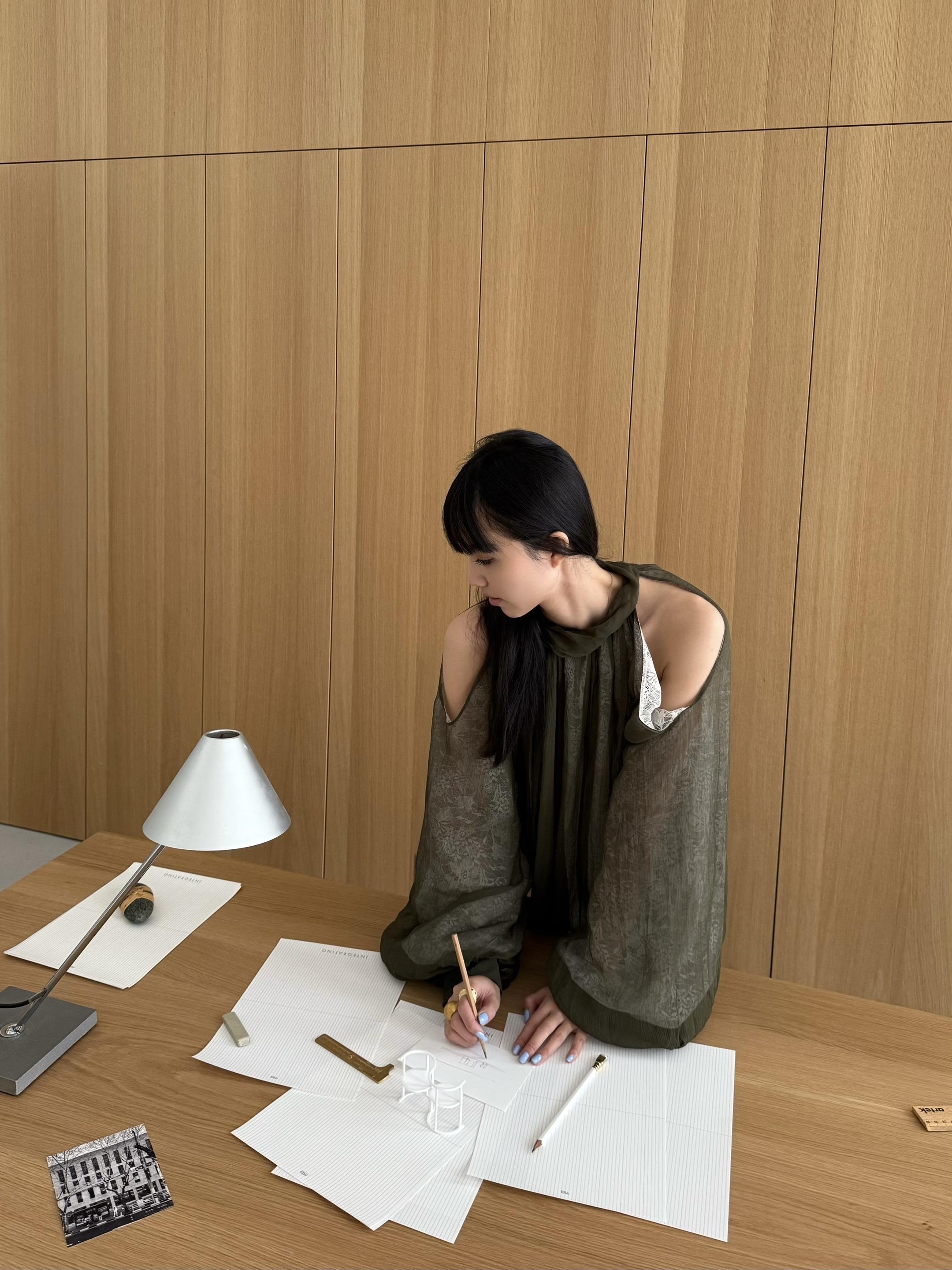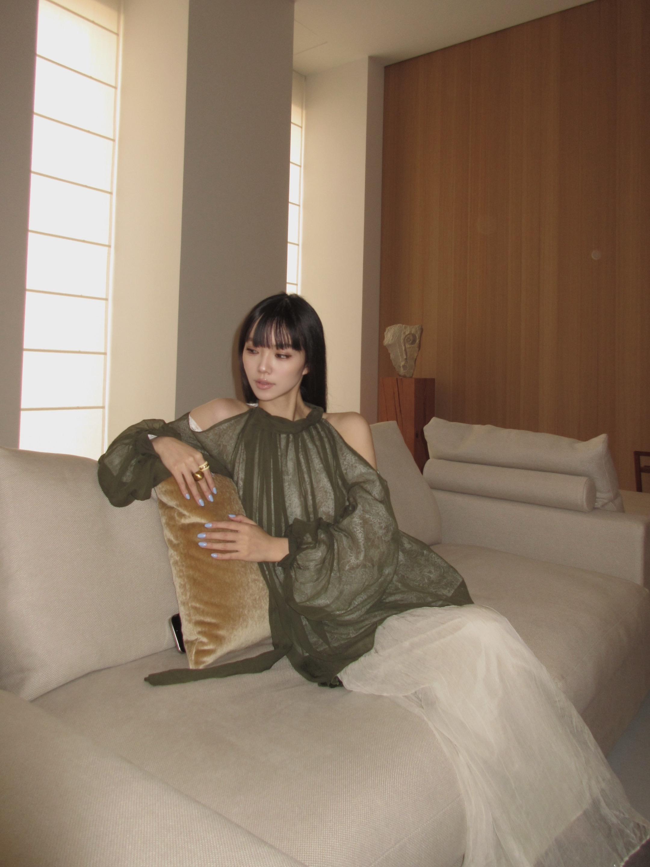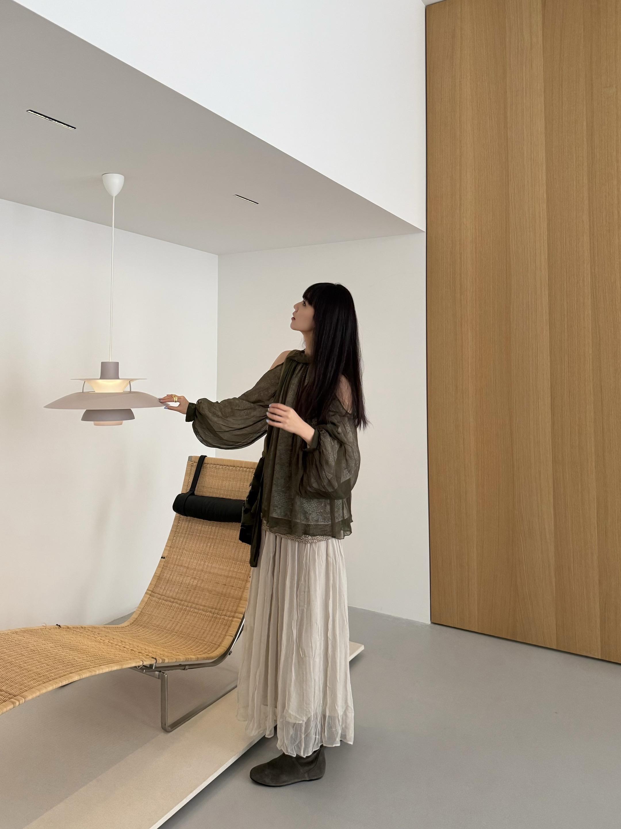 卢昱晓淡蓝蓬裙缀满细腻纹路,温柔又华丽,宛如落入凡间的星光。卢昱晓工作室卢昱晓