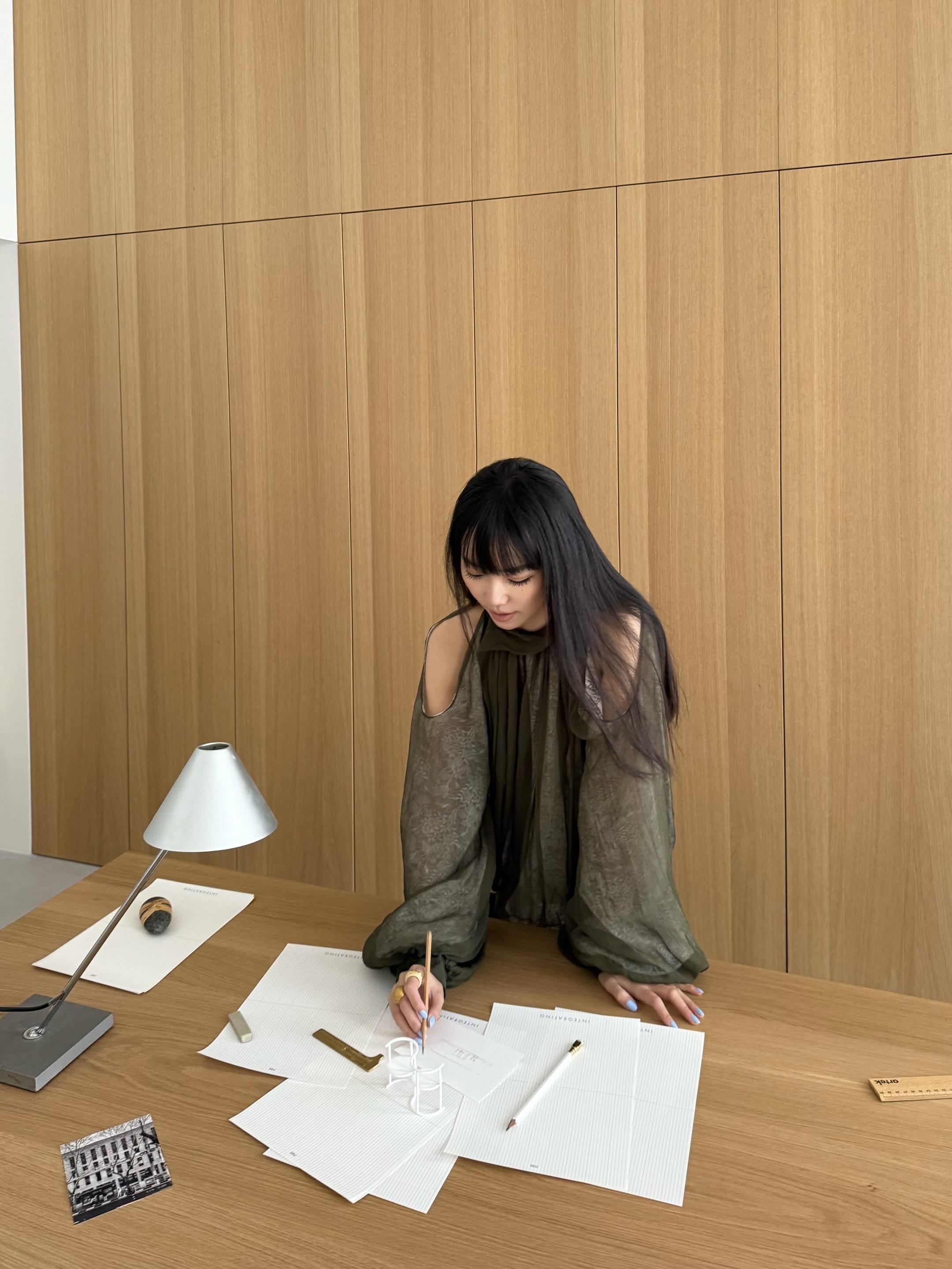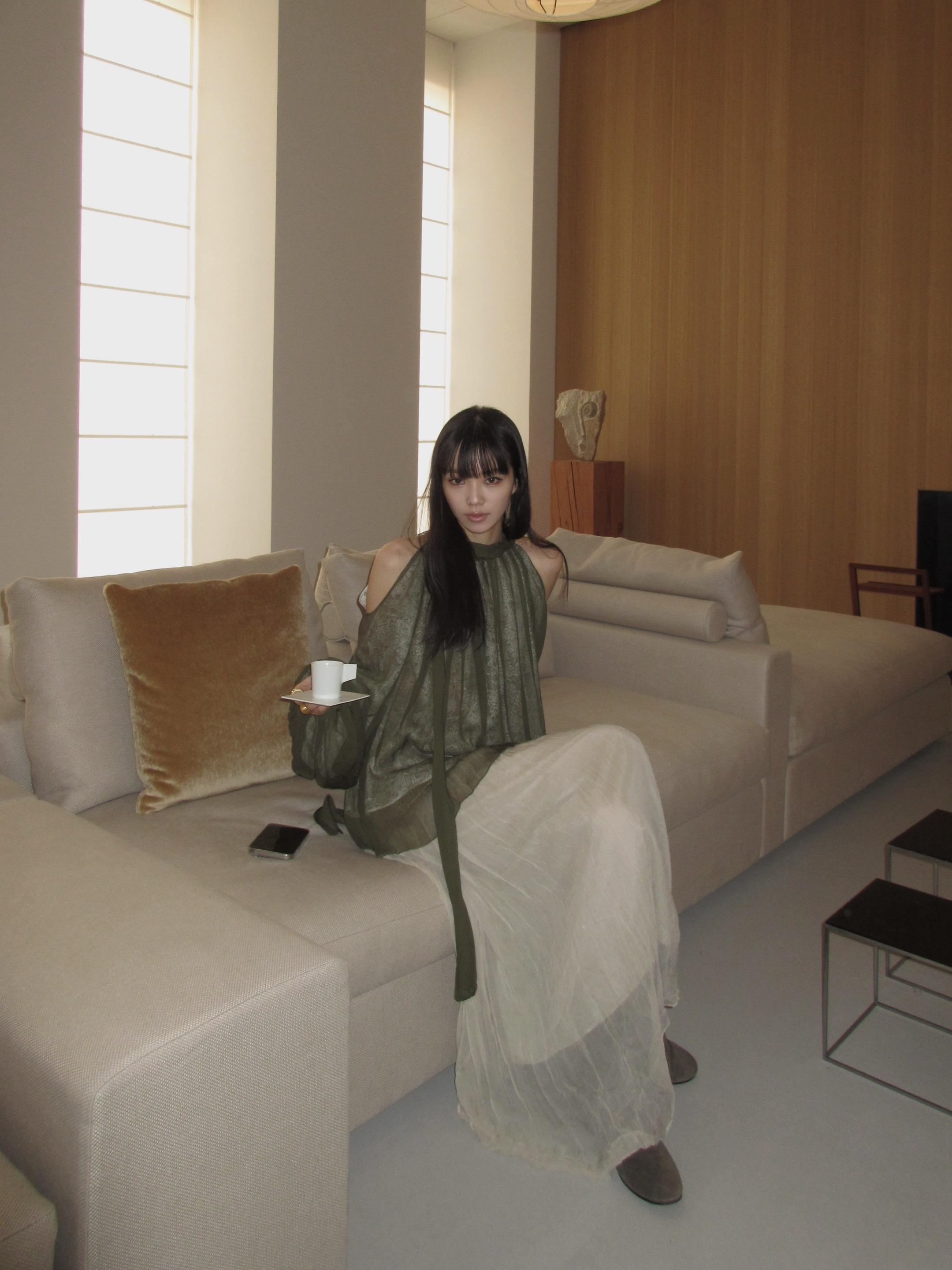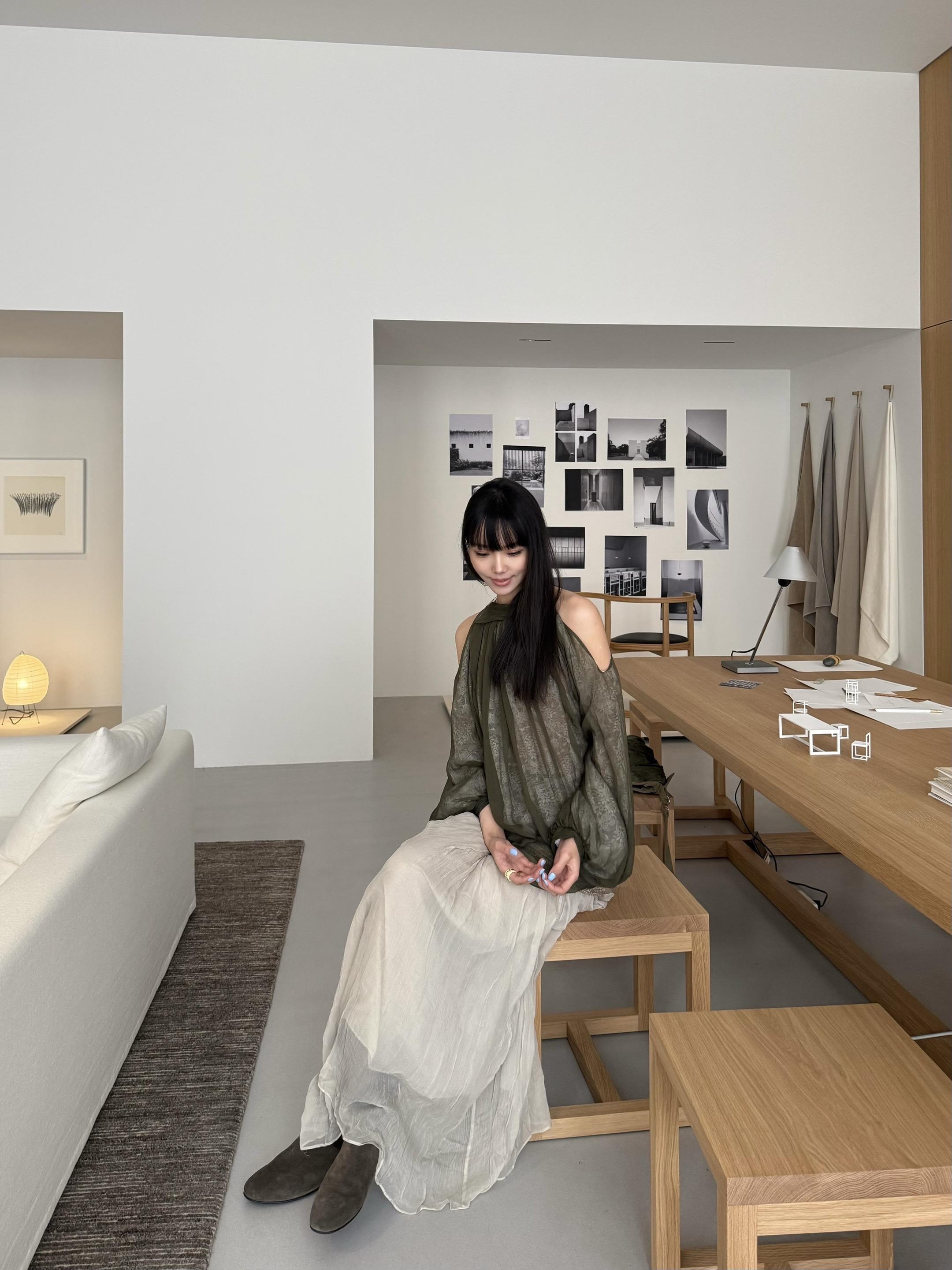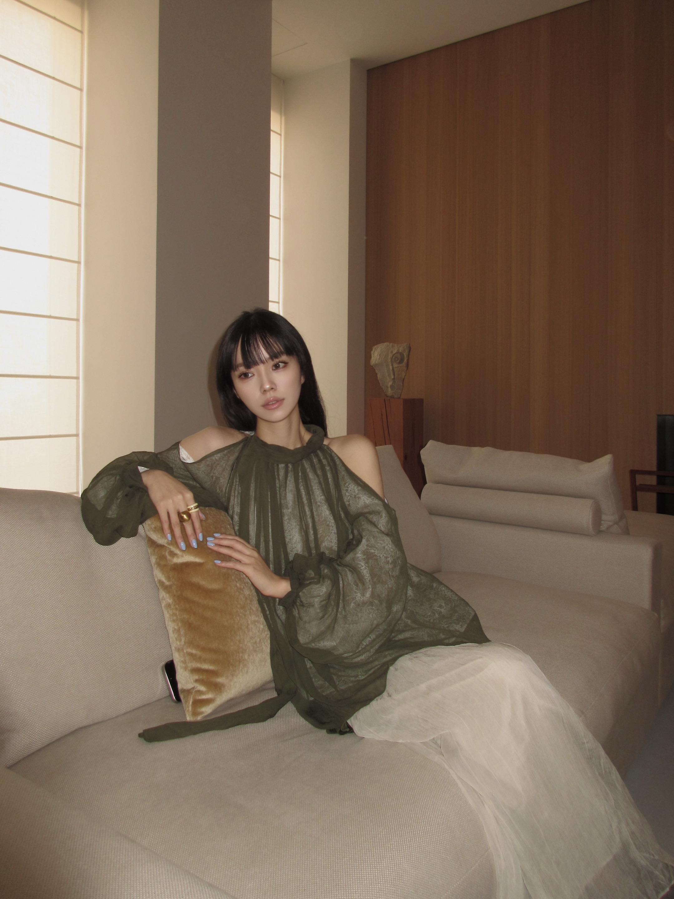 卢昱晓淡蓝蓬裙缀满细腻纹路,温柔又华丽,宛如落入凡间的星光。卢昱晓工作室卢昱晓
