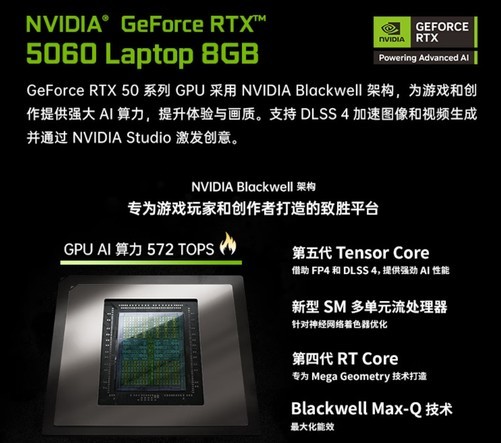 作为一台高性价比游戏本,它同样有四个比较明显的有点。第一个优点,就是其搭载了满血版的RTX5060,也就是115W版本,游戏性能肯定是没有问题的,再加上DLSS4技术的加持,流畅运行3A大作没有问题。这一点和上一款产品基本是一个水平。